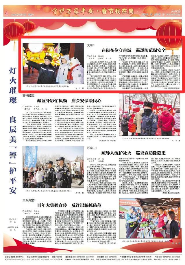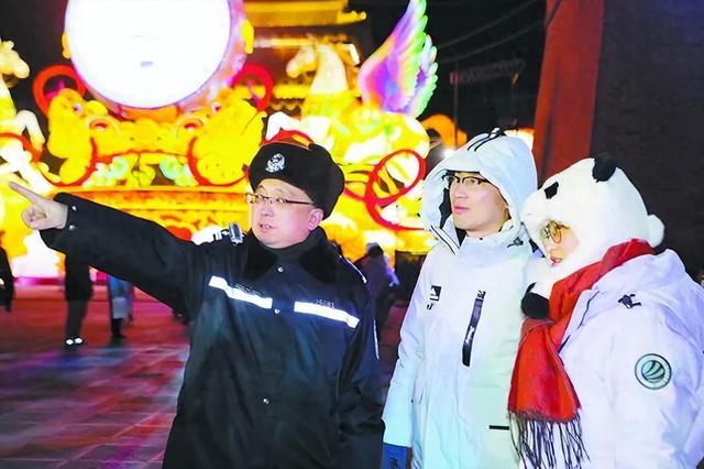 2月19日,农历正月初三,山西大同古城墙在灯光映照下,宛如金色巨龙蜿蜒盘踞。永泰门前人声鼎沸,22米高的主灯流光溢彩,巨大的“天马”造型仿佛在云海中奔腾。在人潮中,大同市公安局民警辅警目光紧盯涌动的人流,用坚守确保群众平安。