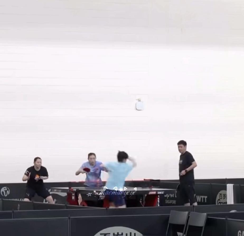 这排面!莎莎一对三硬核训练,神仙陪练团太顶了! 新加坡训练馆这一幕太燃了!孙颖莎直接开启“一对三”地狱模式,球台对面坐镇的可是邱贻可指导、陈熠,还有强力陪练何卓佳👊🏻 一个人面对三位高手的轮番冲击,莎莎丝毫不慌,正反手衔接行云流水,步伐移动快得像风一样。每一次挥拍都充满力量,眼神坚定专注,把顶尖选手的实力和韧劲展现得淋漓尽致。 有邱指导精准抠细节,有陈熠坐镇施压,还有何卓佳模拟最强对手,这种顶级配置的训练,简直是“魔鬼”级别但也绝对是夺冠的保障!期待莎莎在新加坡大满贯上的精彩表现,冲就完事了!💪 孙颖莎 新加坡大满贯 国乒 邱贻可