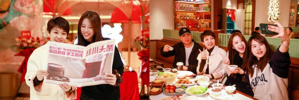 餐厅里更是座无虚席,餐桌之上,现点现蒸的非遗点心热气氤氲:晶莹饱满的虾饺、软糯酥脆的红米肠等广式点心,征服了不同年龄段的食客。餐桌之外,新春打卡的喜庆氛围与装饰相映成趣,晚辈记录美食与团圆瞬间,长辈细品地道广式风味,共同承载着别样的新年记忆。