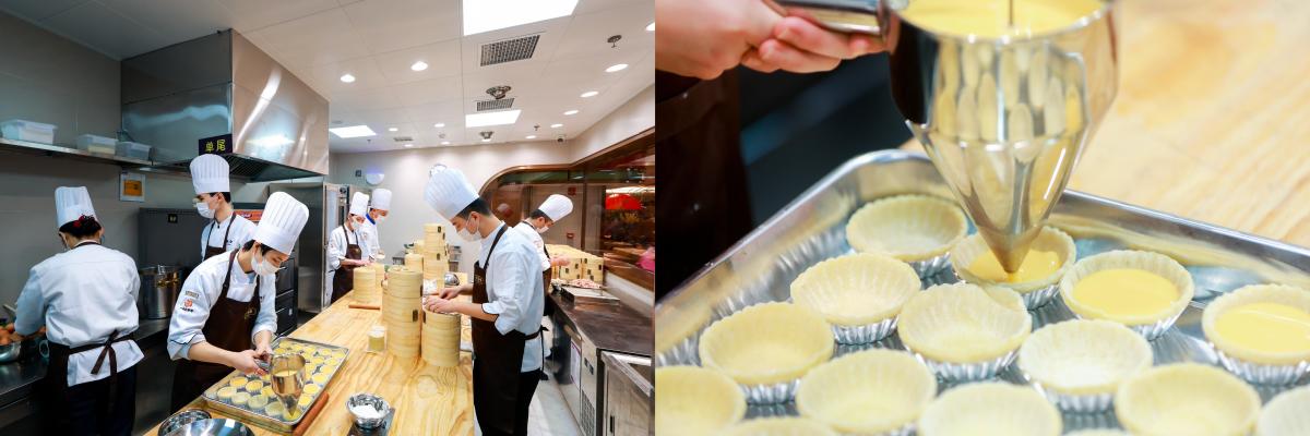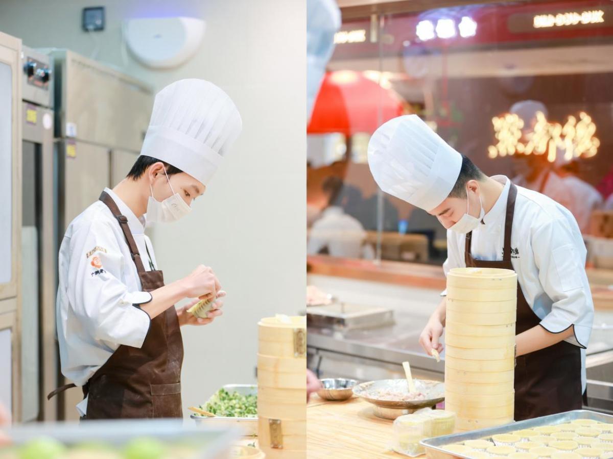 后厨里,明厨亮灶的操作间热气腾腾,点心师傅们带着老广的手艺与心意,手工把控每道工序:揉面要够弹、擀皮要匀薄、包馅要足料,全程现做现蒸,让每一口都裹着刚出锅的新鲜与手作温度。