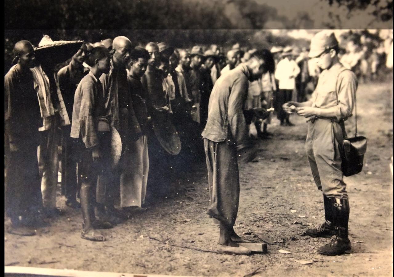1940年的湖北武汉,一个日本士兵正在检查应征苦力的身份。一名年轻的男子低着头站在日本人面前,小心翼翼地递上自己的良民证件。一旁站着成排等待检查的百姓,大多数人垂手低头而立, 看似平静的神情中,透着无奈、茫然和屈辱。为了生存,他们选择为日本人干活。 “誓死不做亡国奴”,曾是那个时代无数中国人心中燃烧的信念。作为今天的我们,真不知该怎样评判照片中这些人的行为。