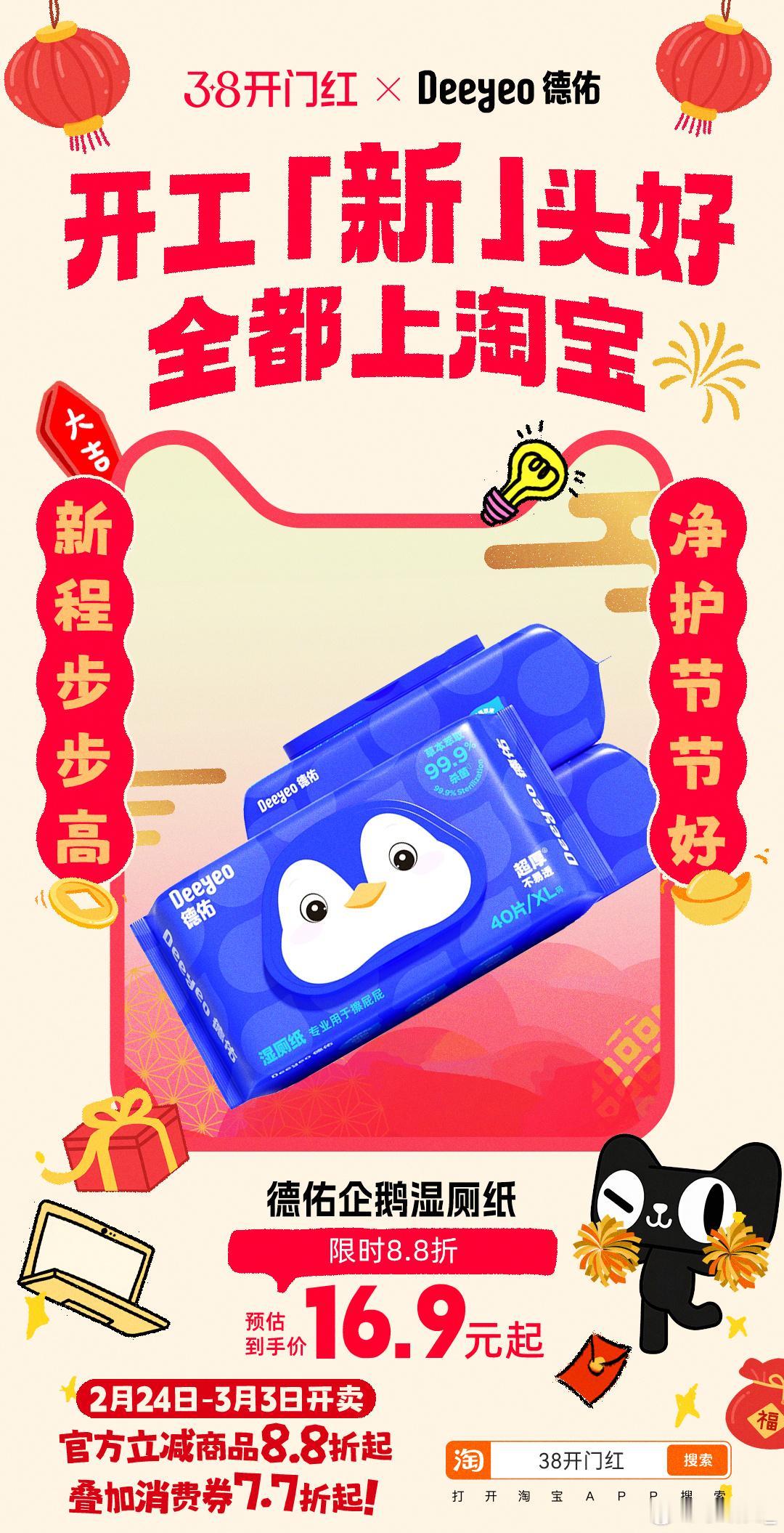 拒绝开工焦虑,从焕新开始!把办公桌、生活好物全更新,淘宝搜【38开门红】,官方立减8.8折起,叠加消费券7.7折起,清爽开工状态满分。上淘宝开工淘个好彩头开工新头好全都上淘宝