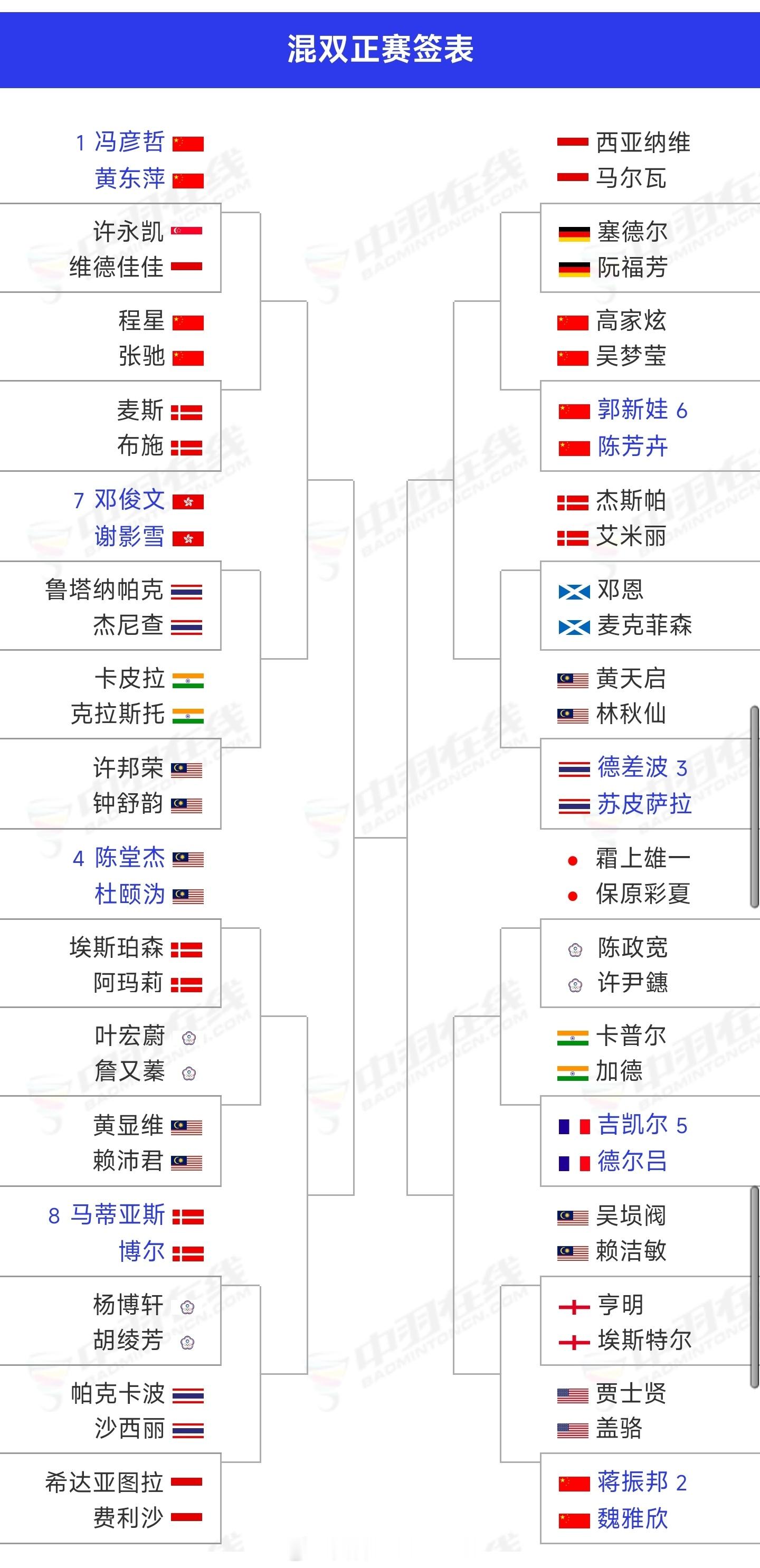 🟣混双(图5)冯彦哲/黄东萍🇨🇳 vs 许永凯🇸🇬/维德佳佳🇮🇩蒋振邦/魏雅欣🇨🇳 vs 普雷斯利/珍妮·盖🇺🇸郭新娃/陈芳卉🇨🇳 vs 高家炫/吴梦莹🇨🇳程星/张驰🇨🇳 vs 麦斯/布施🇩🇰