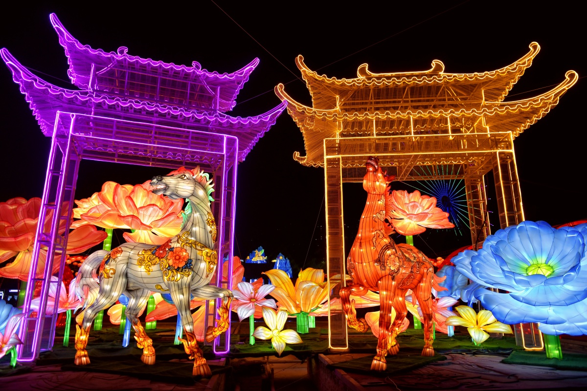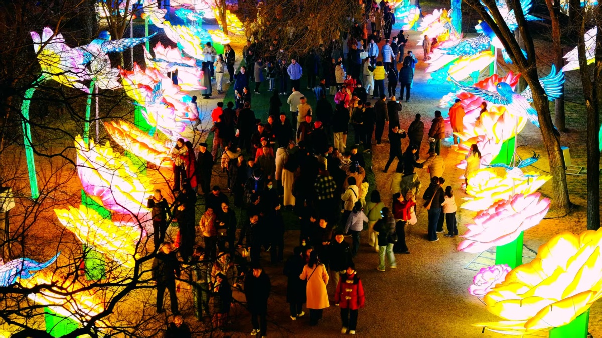 当夜幕降临,华灯初上,这里便化身为国潮涌动的欢乐海洋。融合了高跷、傩舞、英歌舞及京剧元素的“飞马传”巡游队伍沿园路浩浩荡荡走来,演员们与市民游客快闪互动,让传统文化变得可感可触。国潮音乐会热力开唱,传统民乐与现代节奏碰撞出时尚火花,为新春游园注入了满满活力。