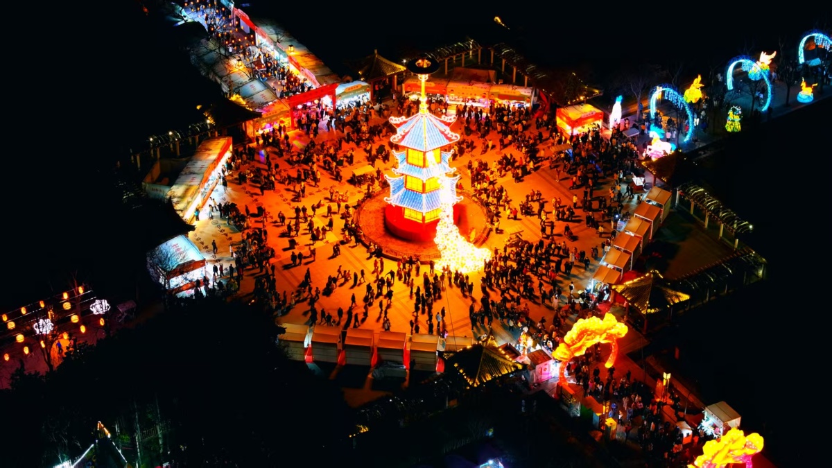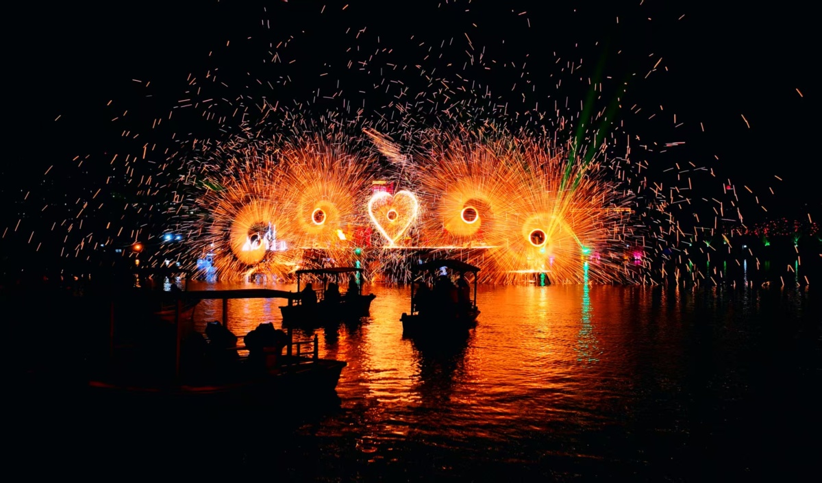 作为压轴大戏,升级版非遗打铁花表演更是点燃全场热情。以“风火轮”与“火壶”为特色,炽热的铁水在空中泼洒出万千星辰,与现代化光影技术完美融合,在夜幕中勾勒出最绚烂的弧线。此外,园区内还设置了杂技、舞龙舞狮等非遗民俗展演,搭配琳琅满目的特色美食,为游客奉上一场年味十足、视听味俱全的新春文化庙会。