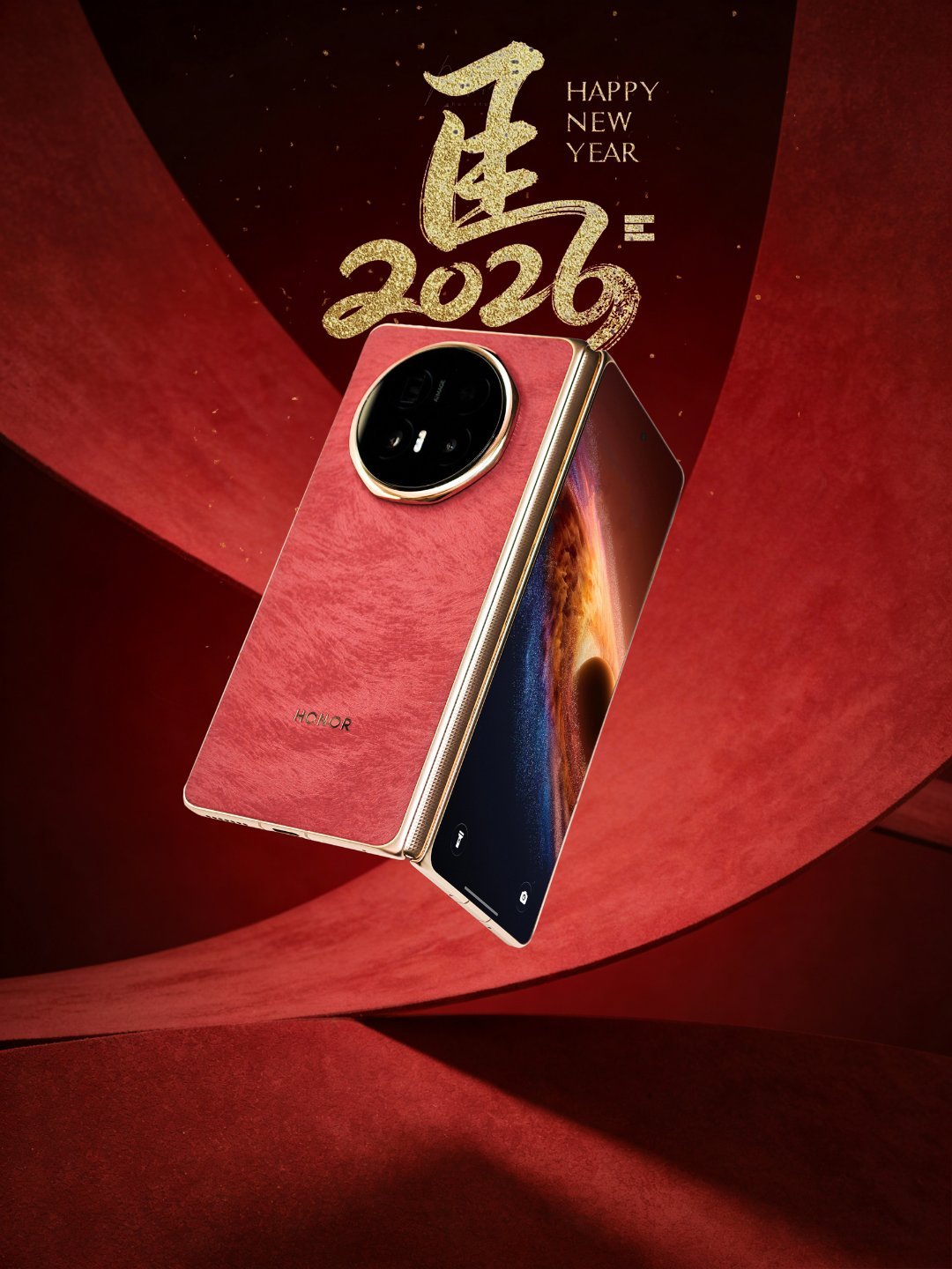 手机还能红成这样?荣耀Magic V6这组赤兔红图赏看得我心跳加速。不是那种廉价的亮面红,而是带着丝绒质感的哑光赤红,光打上去会流动的那种。八边形镜头模组配上金色细边,背面星轨纹路若隐若现——这做工细节,拿手里怕不是要忍不住一直翻面看。马年开运第一机,就它了。荣耀Magic V6屏实力 马上红