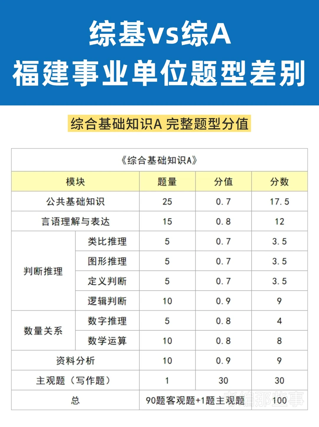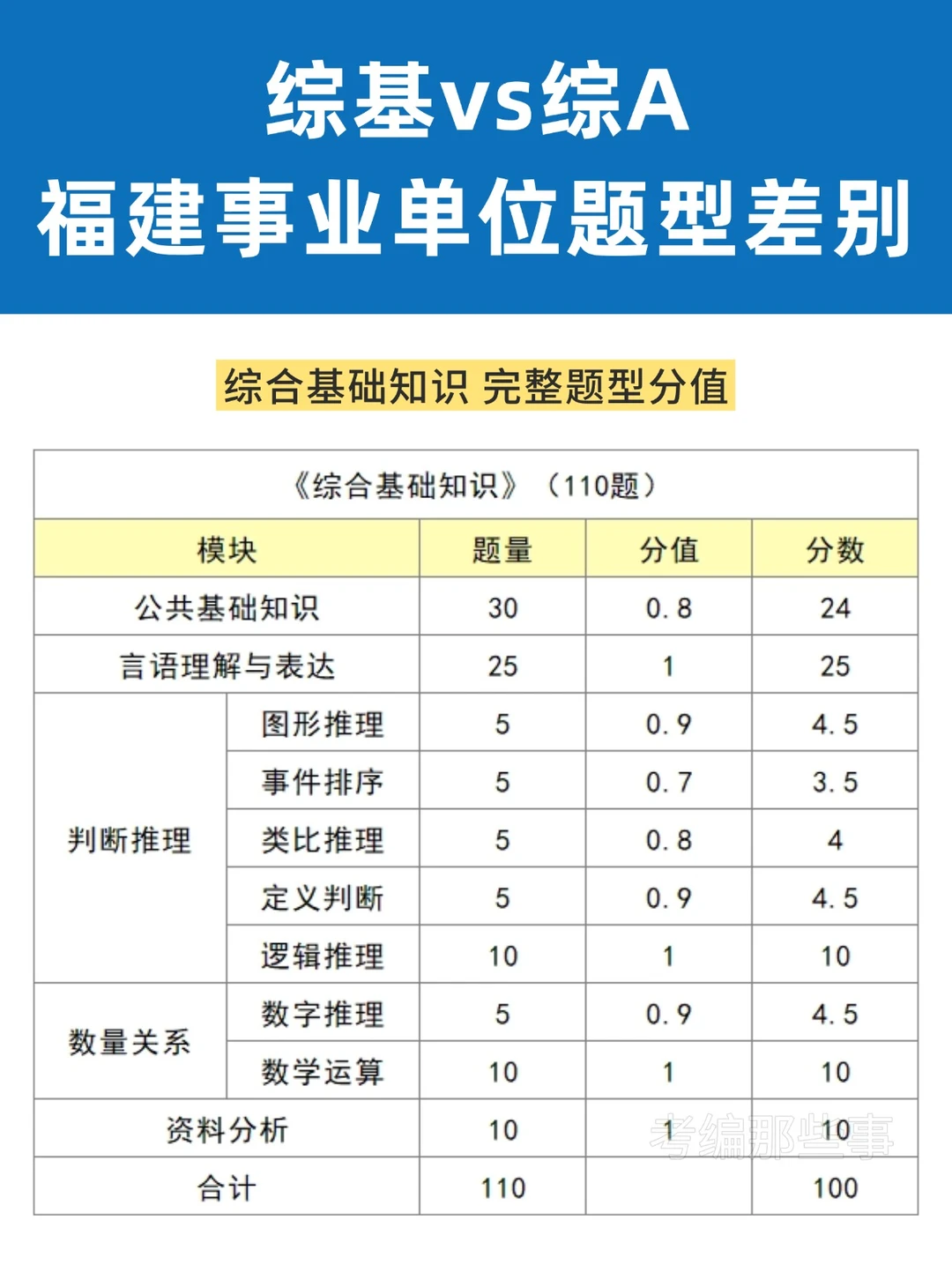 福建事业单位综基vs综A,题型题量差别!