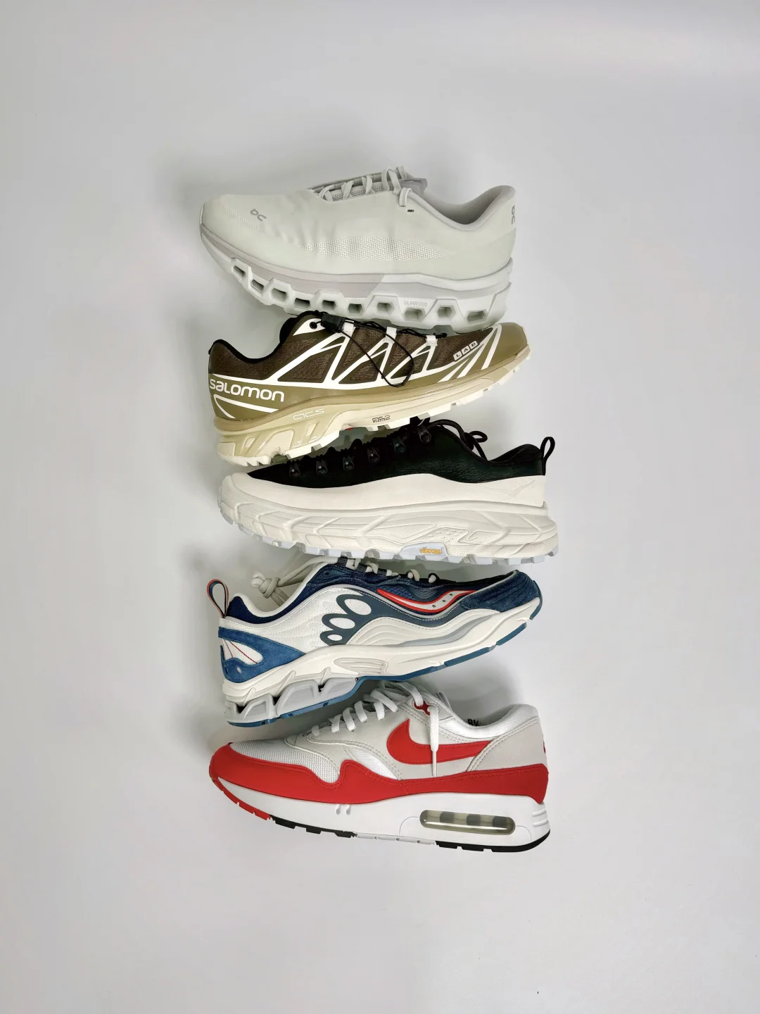 🏃日常通勤的代步鞋,好穿&易搭配,非专业项推荐 . —————— . 1️⃣Salomon XT-6 2️⃣On x PAF Cloudmonster 2 3️⃣Nike Air Max 1 '86 4️⃣Saucony x E.T Grid Fusion 5️⃣HOKA x Hidden Tor Summit 2 . —————— . ✏️Taille:178cm 75kg // EU42 CHN265