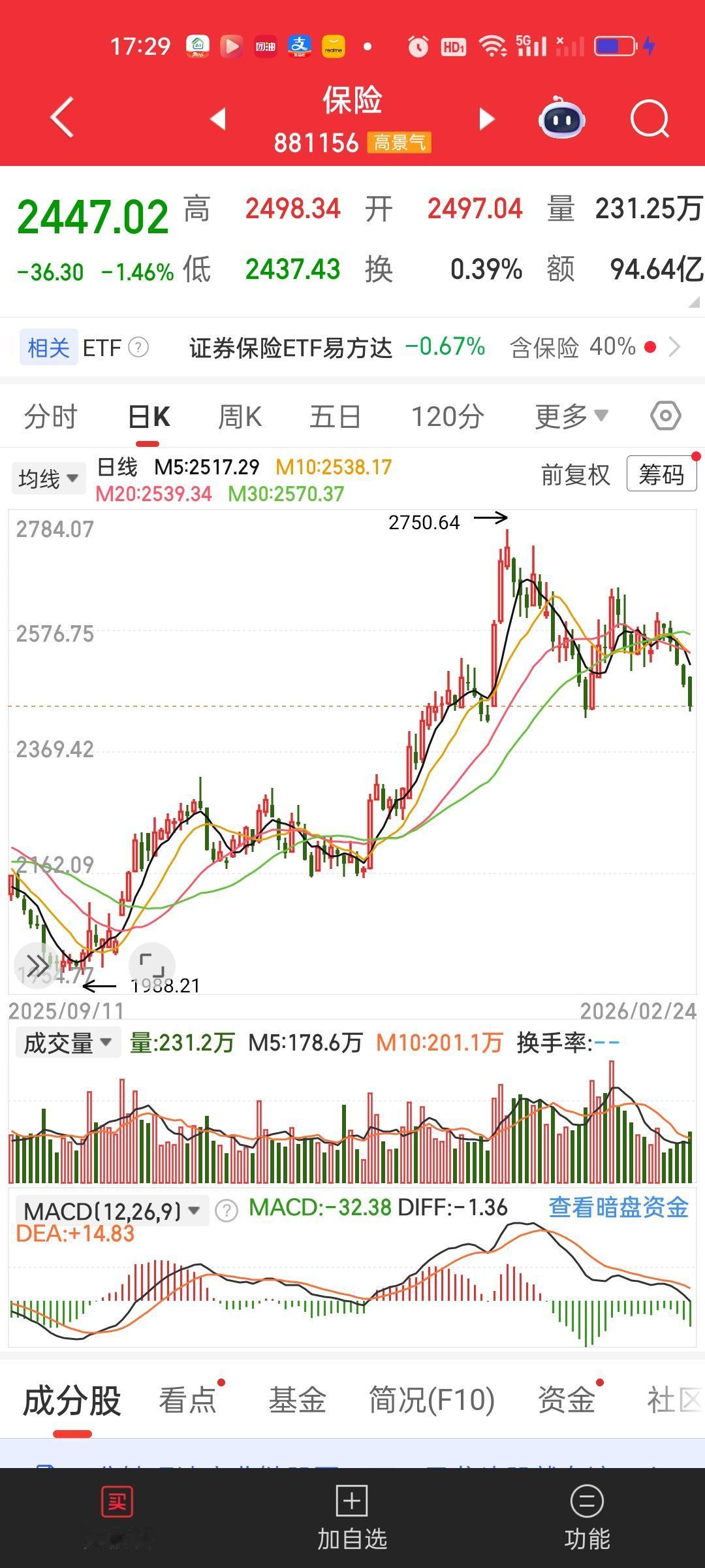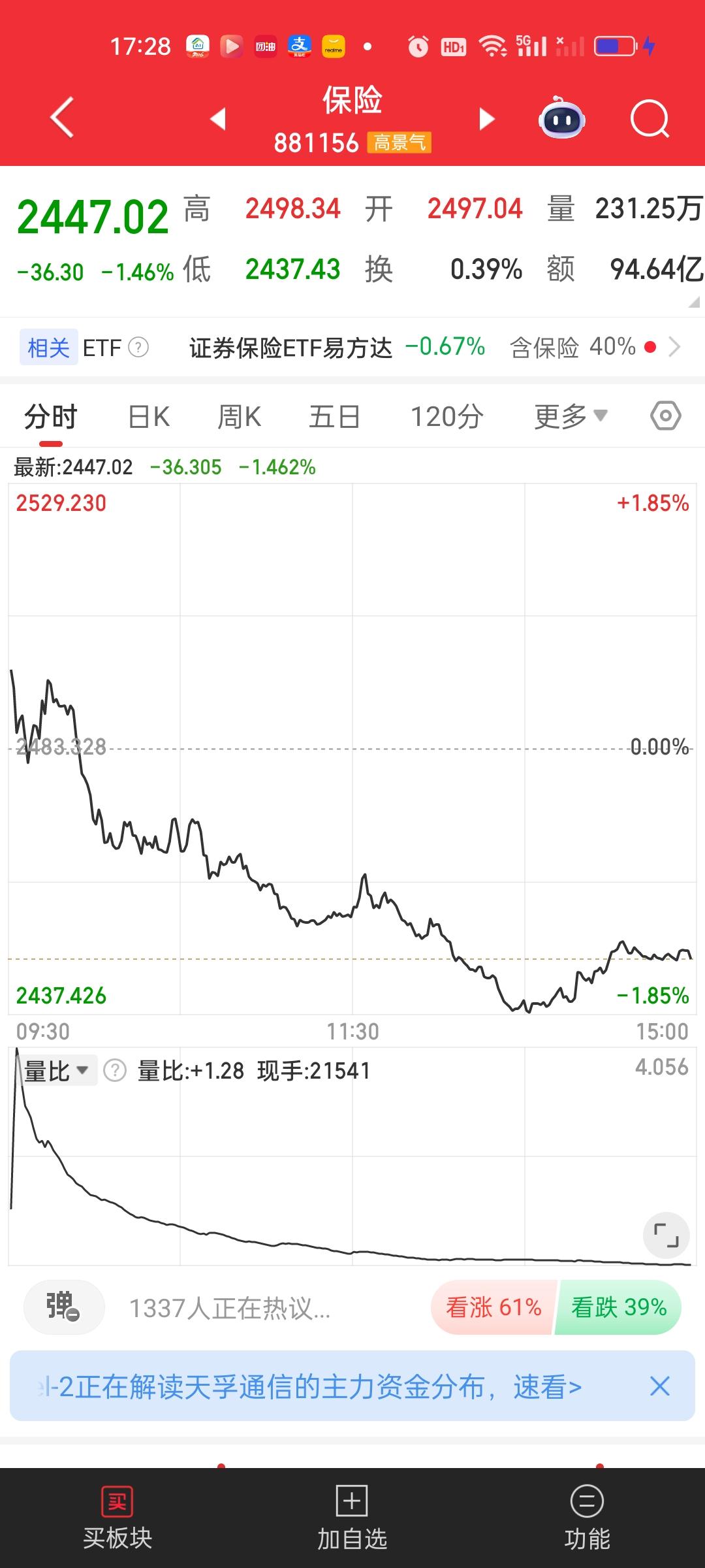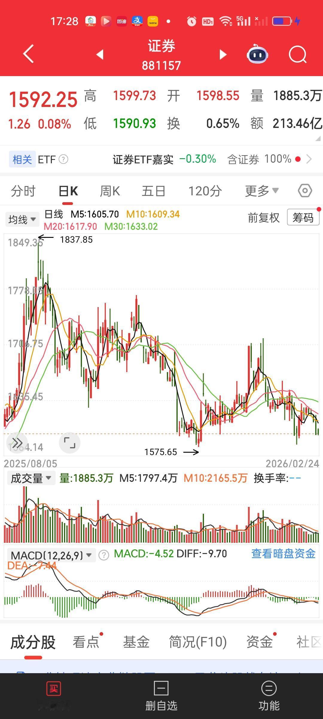 AI应用板块目前离前低1013.65和1006.57已经非常接近,今天最低点1033.99,1013.65/1033.99=0.9803,1006.57/1033.99=0.9735,就差1.97%和2.65%。这个板块大概率不会只走一波,今天开始可以重新布局了,当然如果耐心比较足的,可以等到前低的位置再考虑。 三傻目前来看,券券的位置最低。券券前高1837.85,今天最低1590.93,1590.93/1837.85=0.865,已经跌了13.50%。而保险 2437.43/2750.64,2437.43/2750.64=0.8861,前高下来跌了11.39%,银行1293.99/1401.69=0.9231,从前高下来只跌了7.69%。考虑到指数拉升离不开券券,现在提前埋伏进去也不失为一个比较靠谱的选择。 很多时候我们买进去不要指望第二天就能大涨。也有可能三个月以后才会迎来上涨。但保持耐心就是一种难得的修炼,心态好了,操作就都是顺势而为和水到渠成的事情!