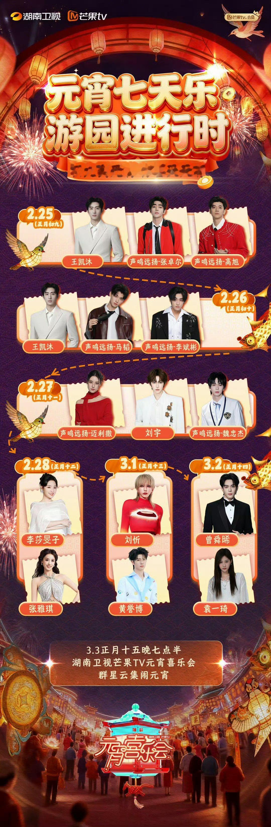 湖南元宵晚会好多人啊 何炅领衔主持天团,周深、罗云熙、曾舜晞、刘宇等超强阵容齐聚,3月3日锁定湖南卫视芒果TV,你最想看到谁?湖南卫视元宵喜乐会