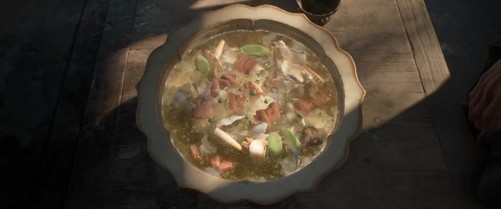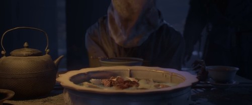 直到片尾,厨娘端着这盆卖相精美的菜肴,小心翼翼地呈给一位头戴布袋的神秘食客。布袋被摘下的一瞬——画面戛然而止。