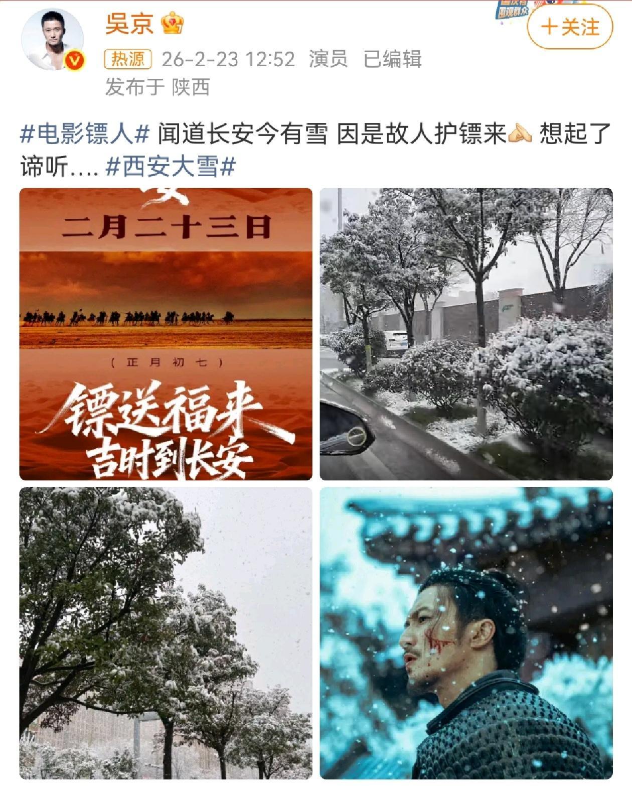 谢楠领嗑吴京谢霆锋谢楠转发了西安大雪的报道,配文:“可惜谛听再也看不到长安的雪了
