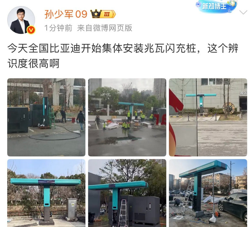 就刚才,孙少在社交网络发了一段比亚迪安装这个闪冲桩的视频 ,这个闪充桩与之前所有的充电桩都不一样!