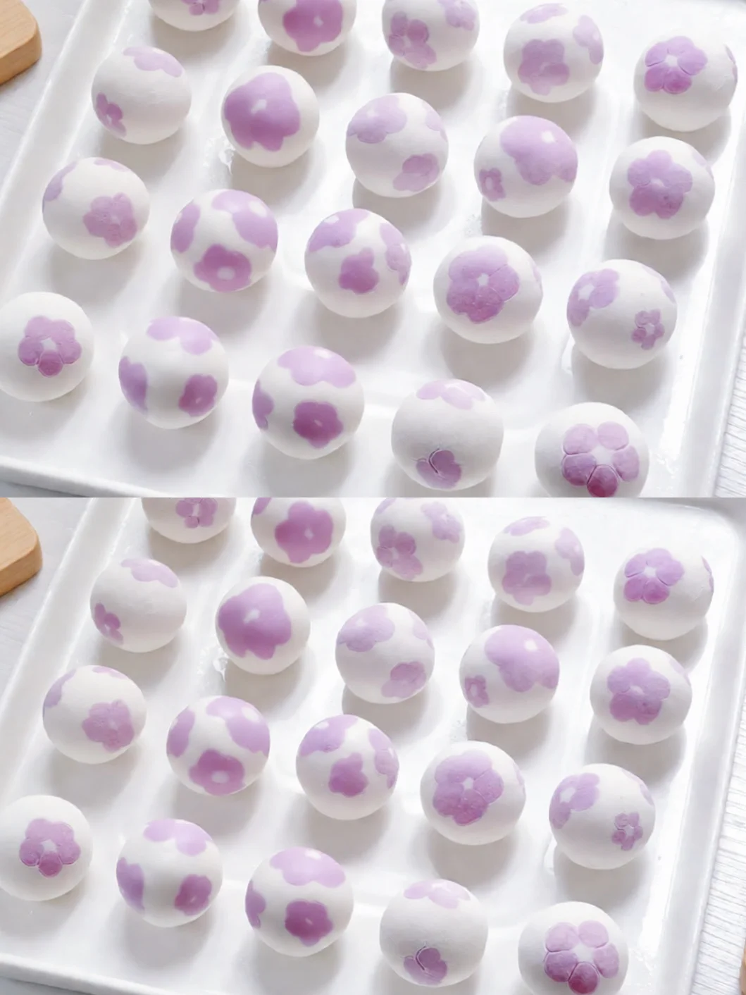 5️⃣白色的分成大小均匀的小剂子,紫色的分成很小很小的小剂子。