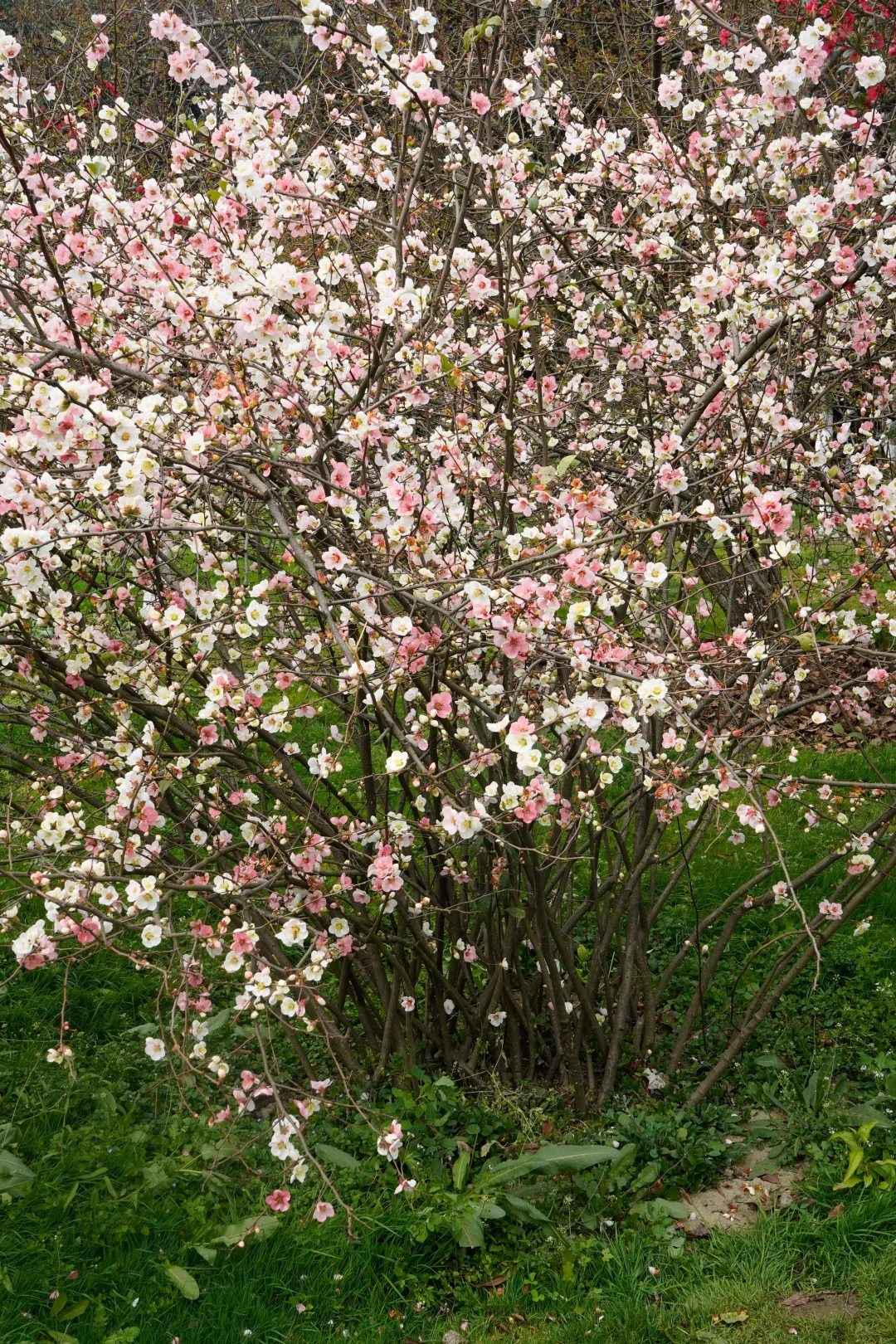 2️⃣海棠园:海棠花虽不多,但白红相见开得特美,像是花神