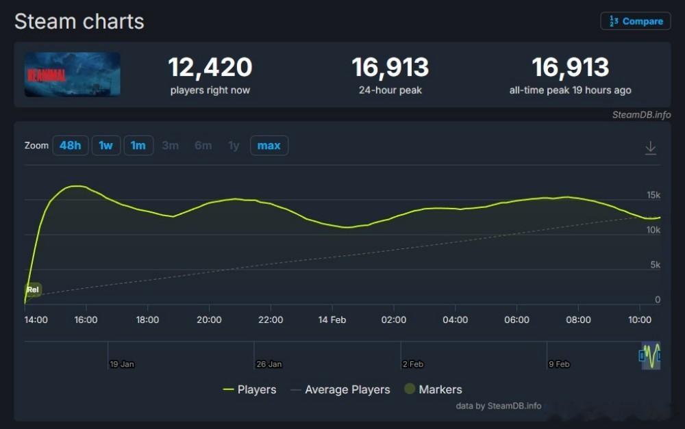【小小梦魇原班人马!微恐新游《Reanimal》走红,说好的“好友通行证”呢?网页链接】2月13日,由《小小梦魇》1、2部原班人马 Tarsier Studios 操刀、THQ Nordic 发行的新作《Reanimal(生灵重塑)》正式登陆全平台。目前游戏的M站均分为80分,根据SteamDB提供的数据,截止发稿前游戏好评率约71%。