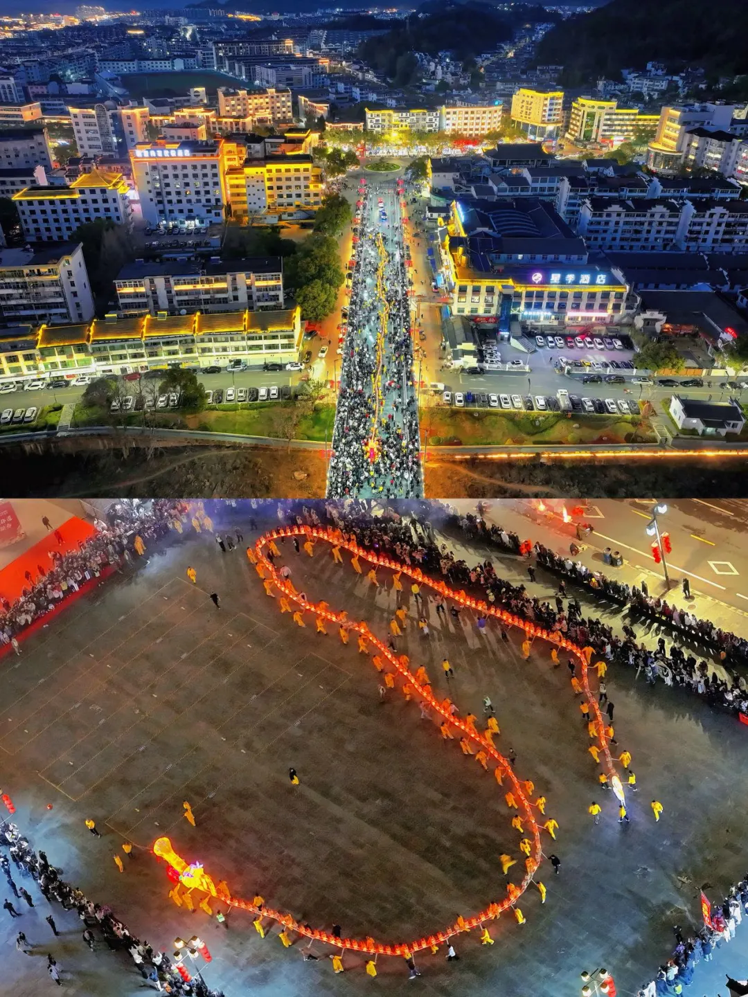 🌟婺源县城正月十三、十五、十八还有龙灯烟火巡游,县城3条龙灯同时起舞,热闹继续‼️