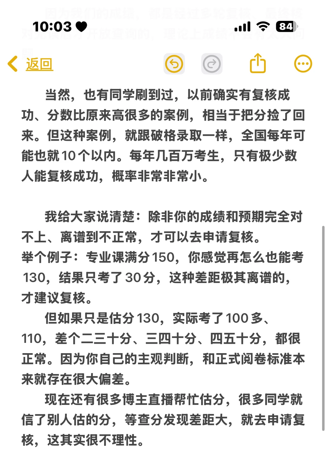 如果只是估分和实际差二三十分、四五十分,都属于正常偏差,不要轻信博主估分就盲目申请复核,这会严重干扰学校招生工作,也基本不会改变结果。