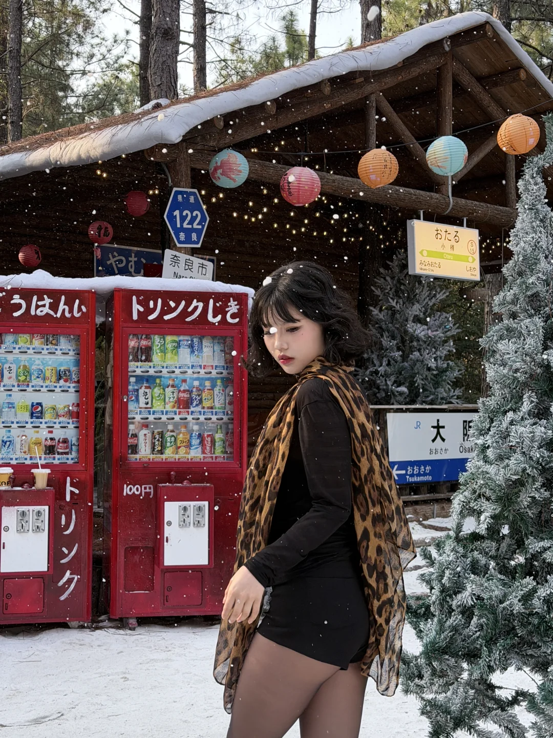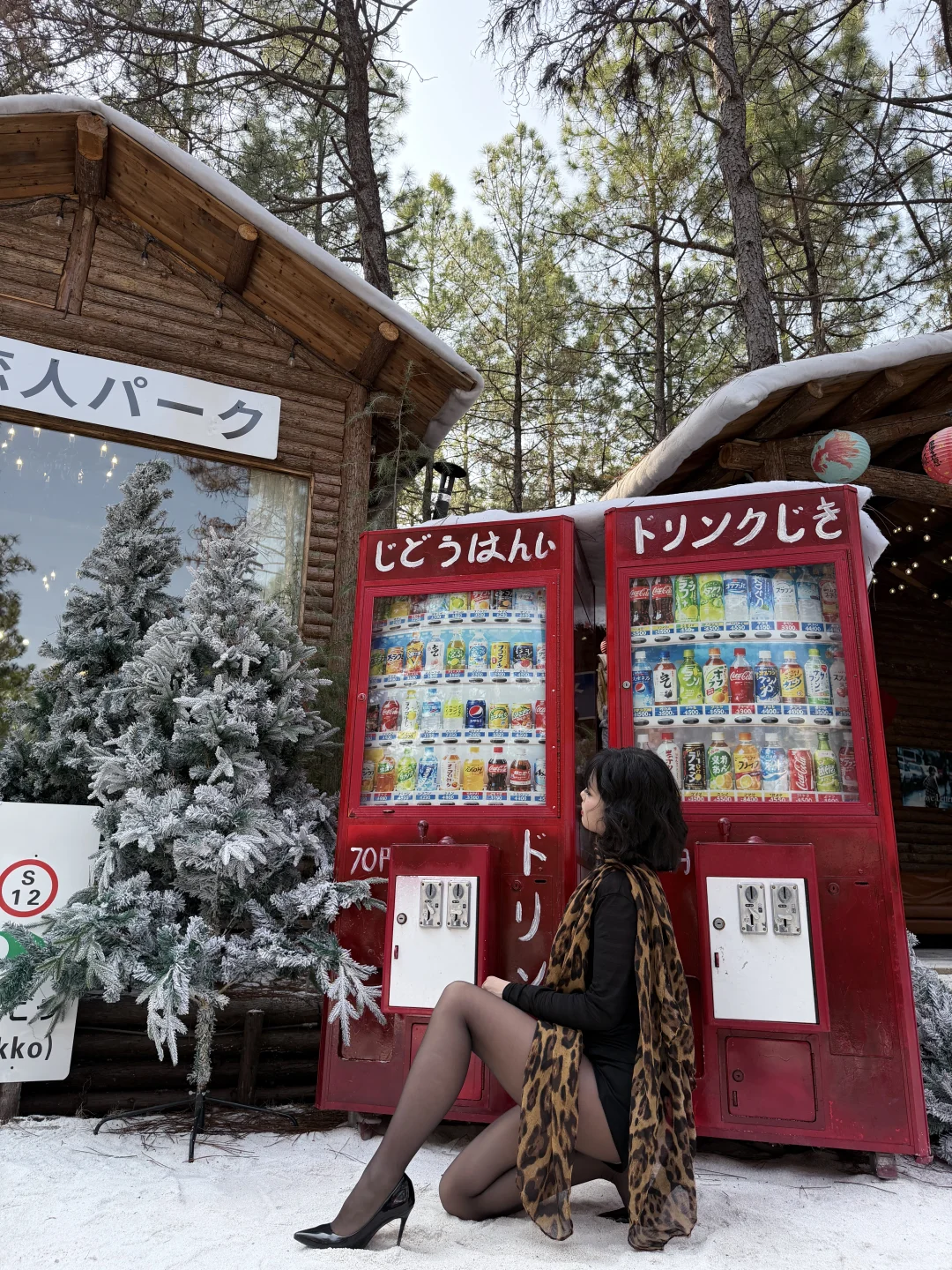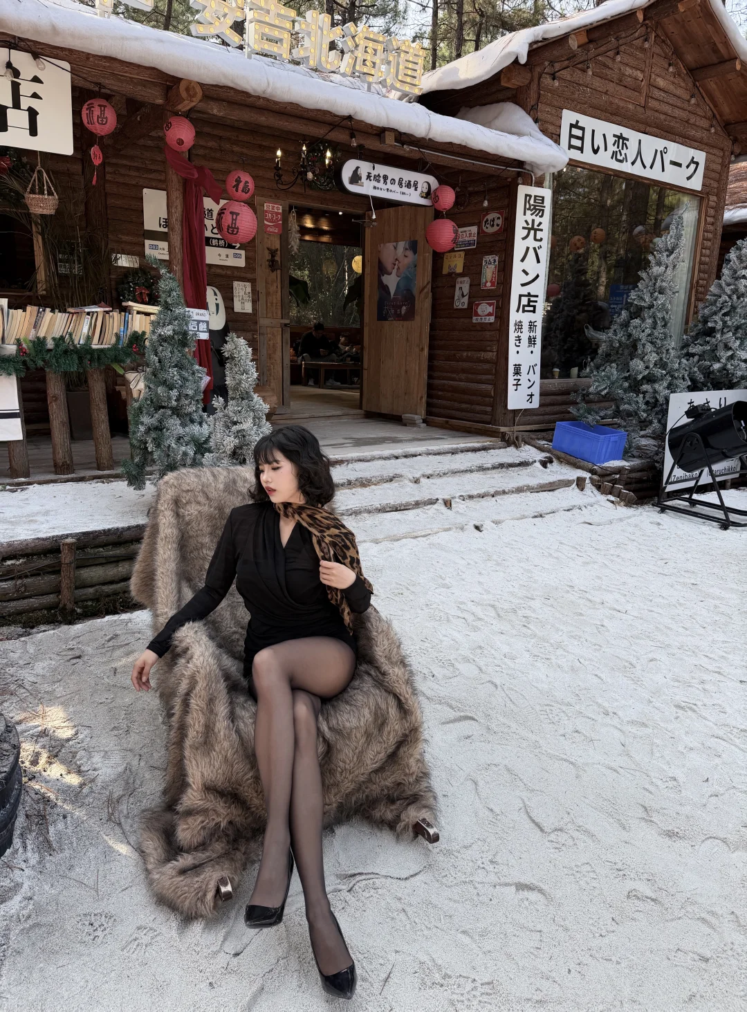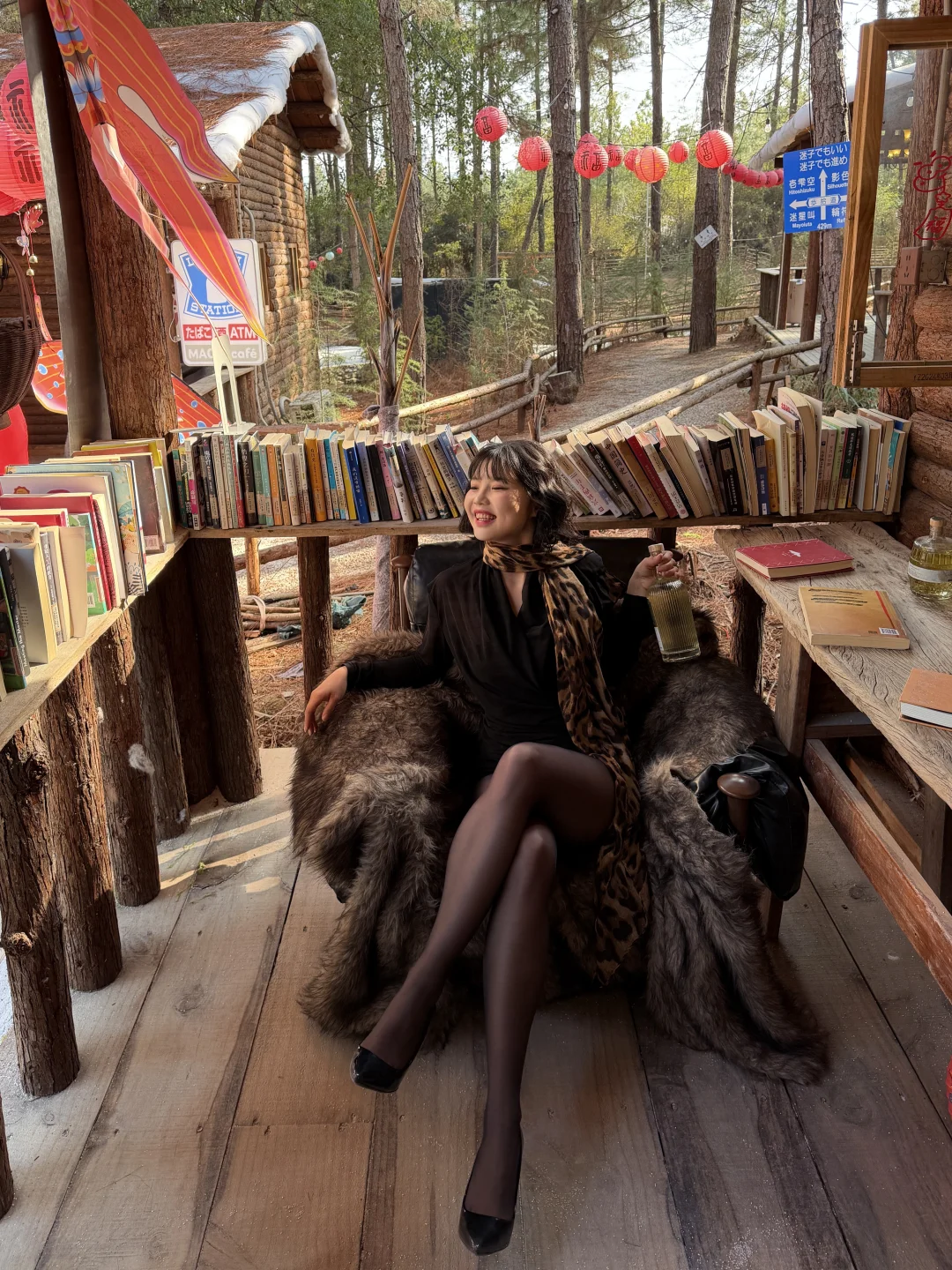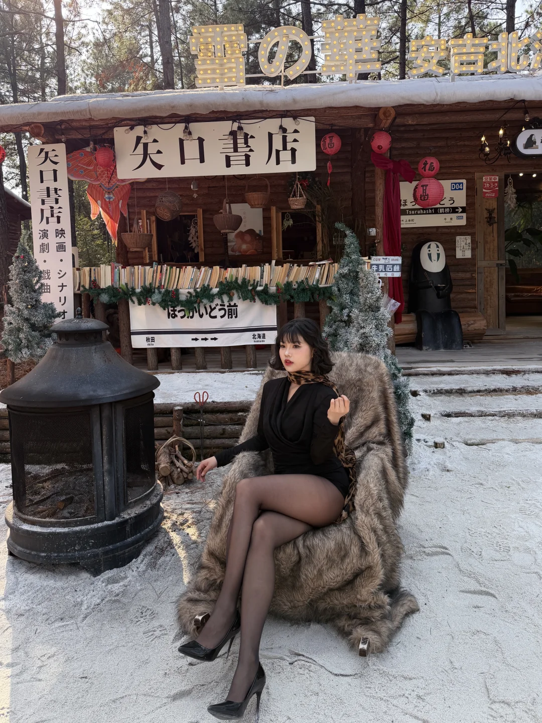 雪の華就在安吉的森林里,木屋、圣诞树、圣诞老人气模,还有毛茸茸的毯子和雪橇椅,每一处都像从日剧里搬出来的场景。