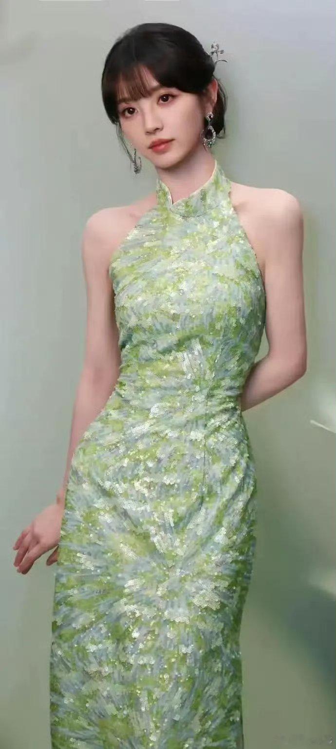 田曦薇身着淡绿色旗袍,宛如江南烟雨中走出的温婉佳人💖 那份清新雅致,盈盈地晕染