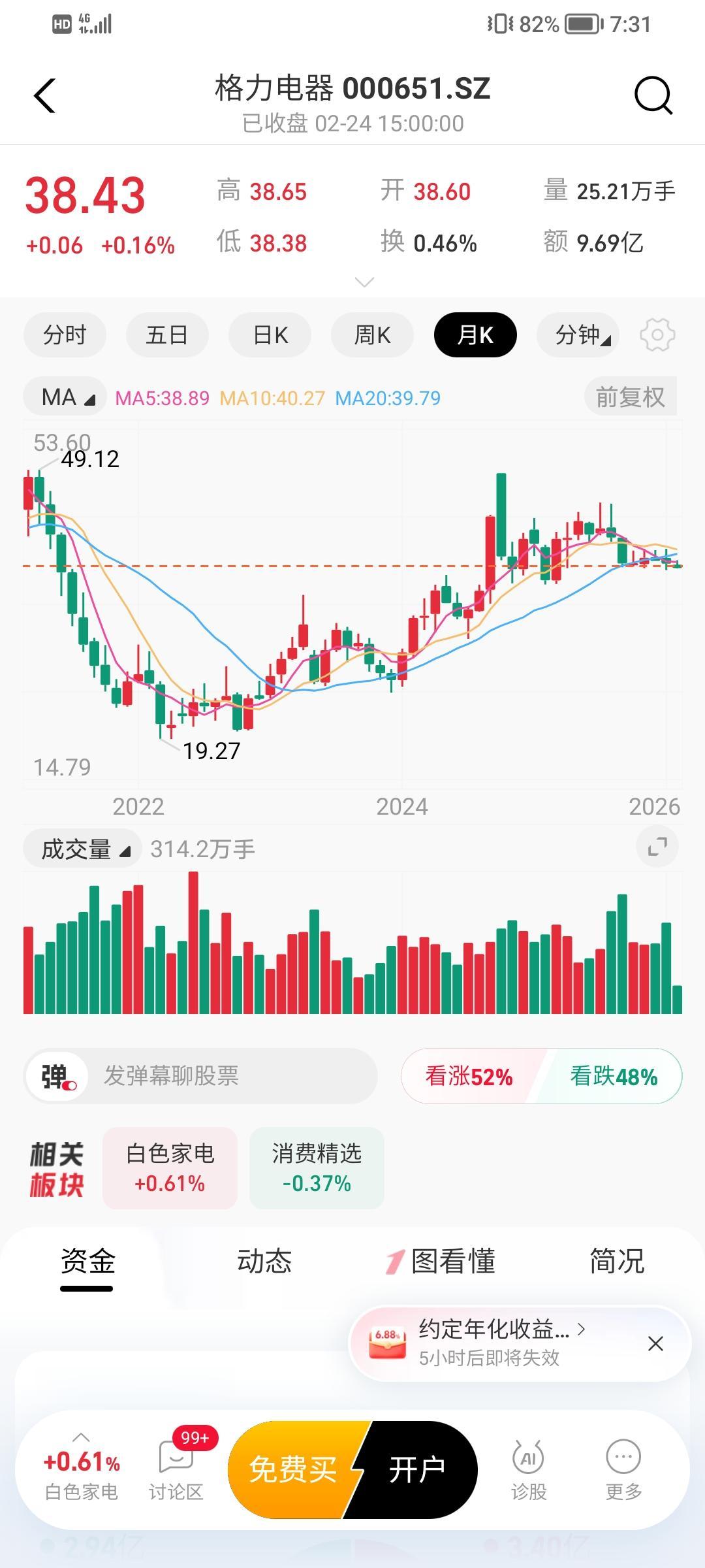 前几年嫌格力电器股价太低,不敢买,现在格力电器走得如诗如花,想买又不敢买,哎,人