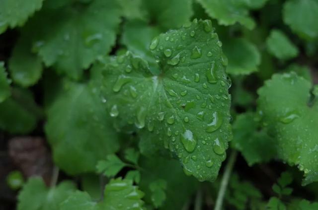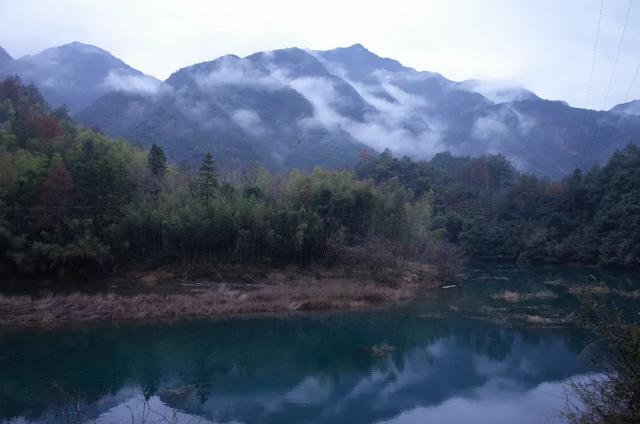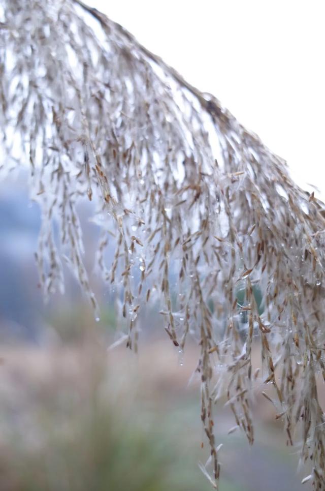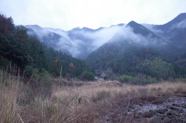 山中落雨。带着冬日的寒凉之气。山峦变成深绿色,空旷昏暝。