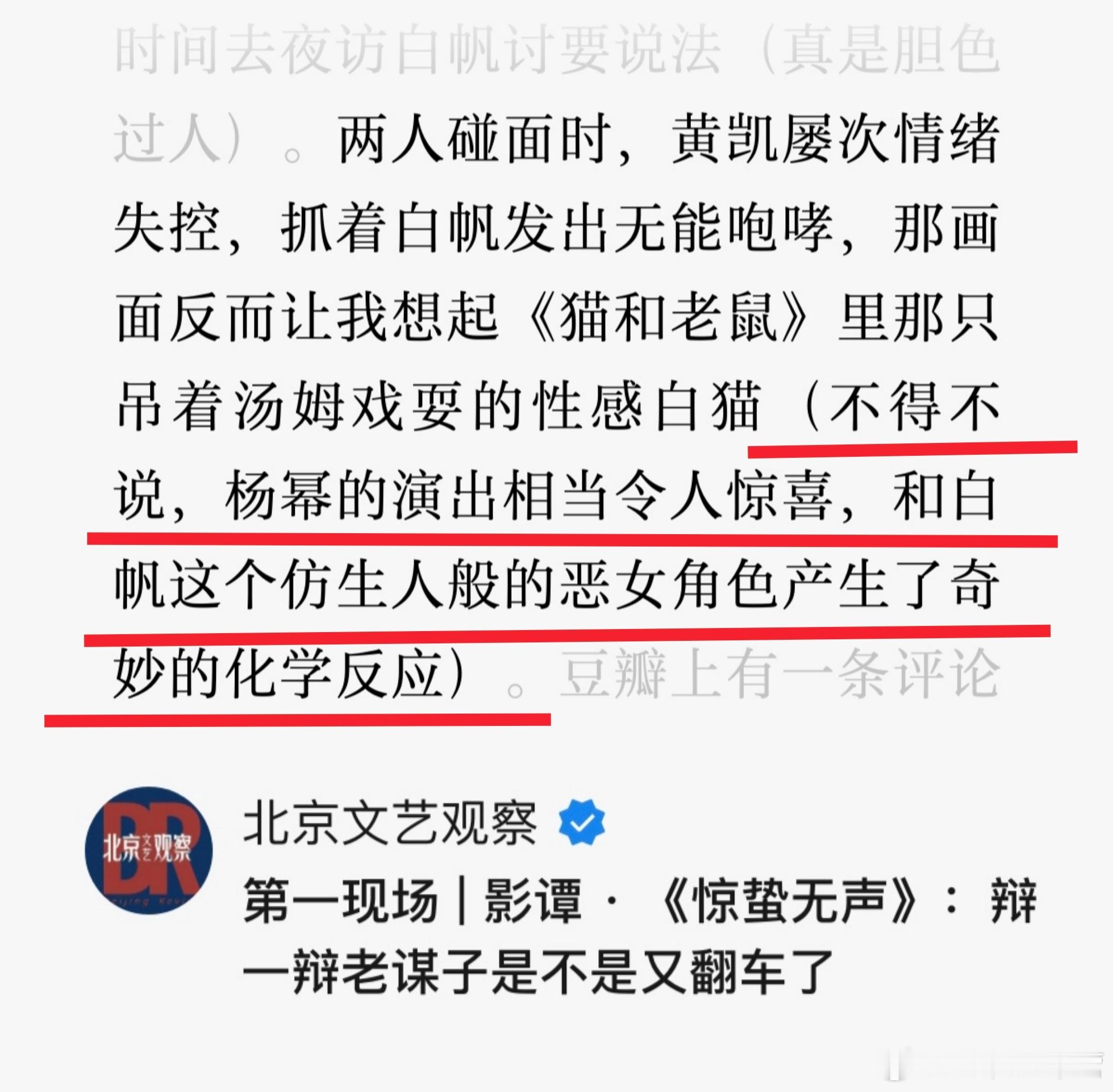 黄凯屡次情绪失控,抓着白帆发出无能咆哮,那画面反而让我想起《猫和老鼠》里那只吊着汤姆戏耍的性感白猫(不得不说,杨幂的演出相当令人惊喜,和白帆这个仿生人般的恶女角色产生了奇妙的化学反应)惊蛰无声杨幂白帆