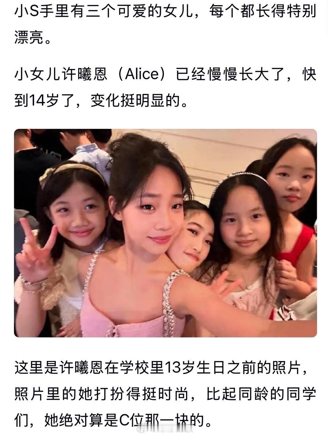 小S三女儿14岁自拍曝光,颜值出众太吸睛