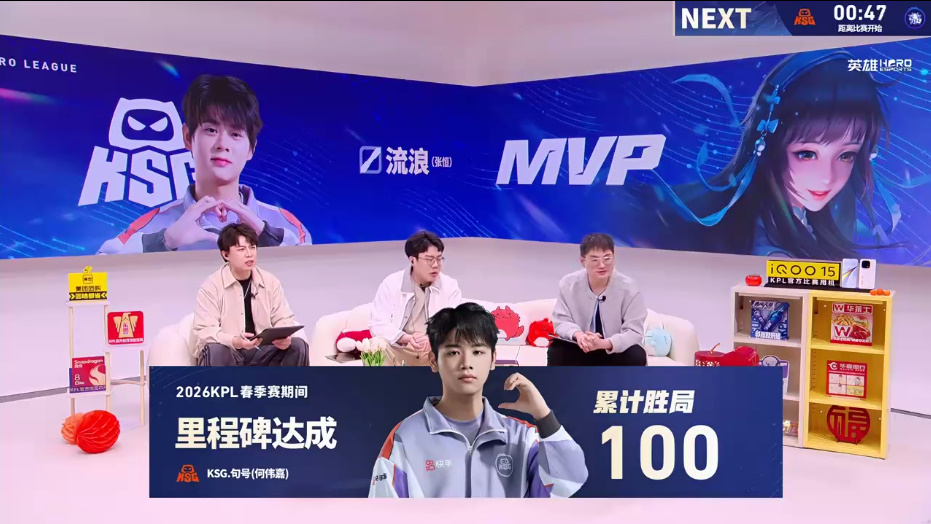 虎扑02月24日讯2026KPL春季赛,KSG对战广州TTG第一局比赛后,KSG.句号达成里程碑:100累计胜局