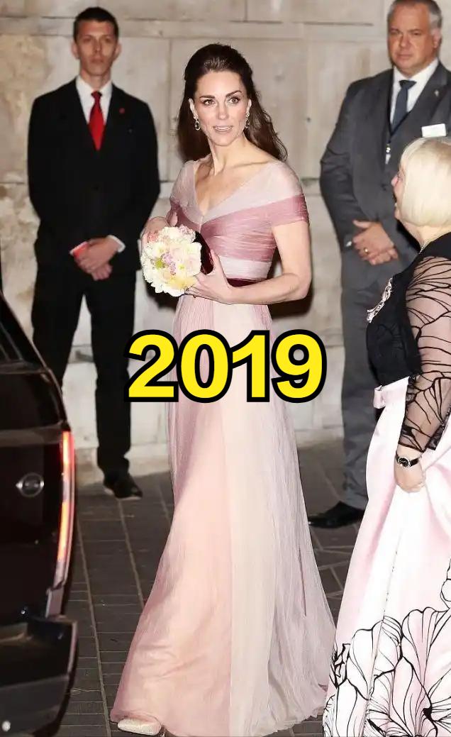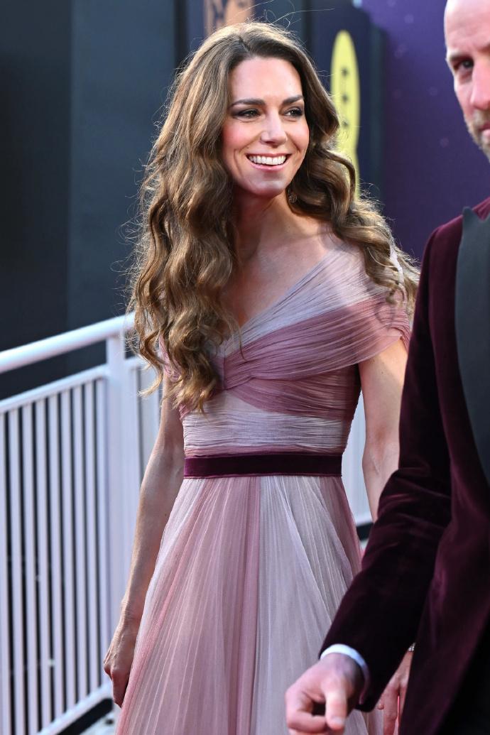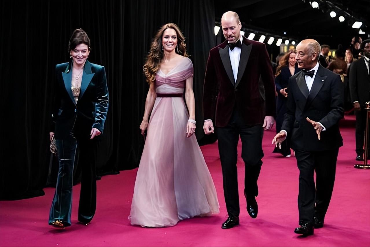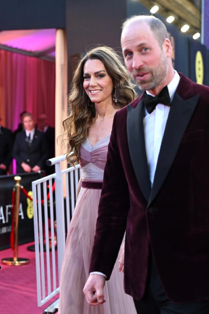 威尔士夫妇出席英国奥斯卡![送心] 凯特穿着2019年一袭粉色纱裙款款走来, 相