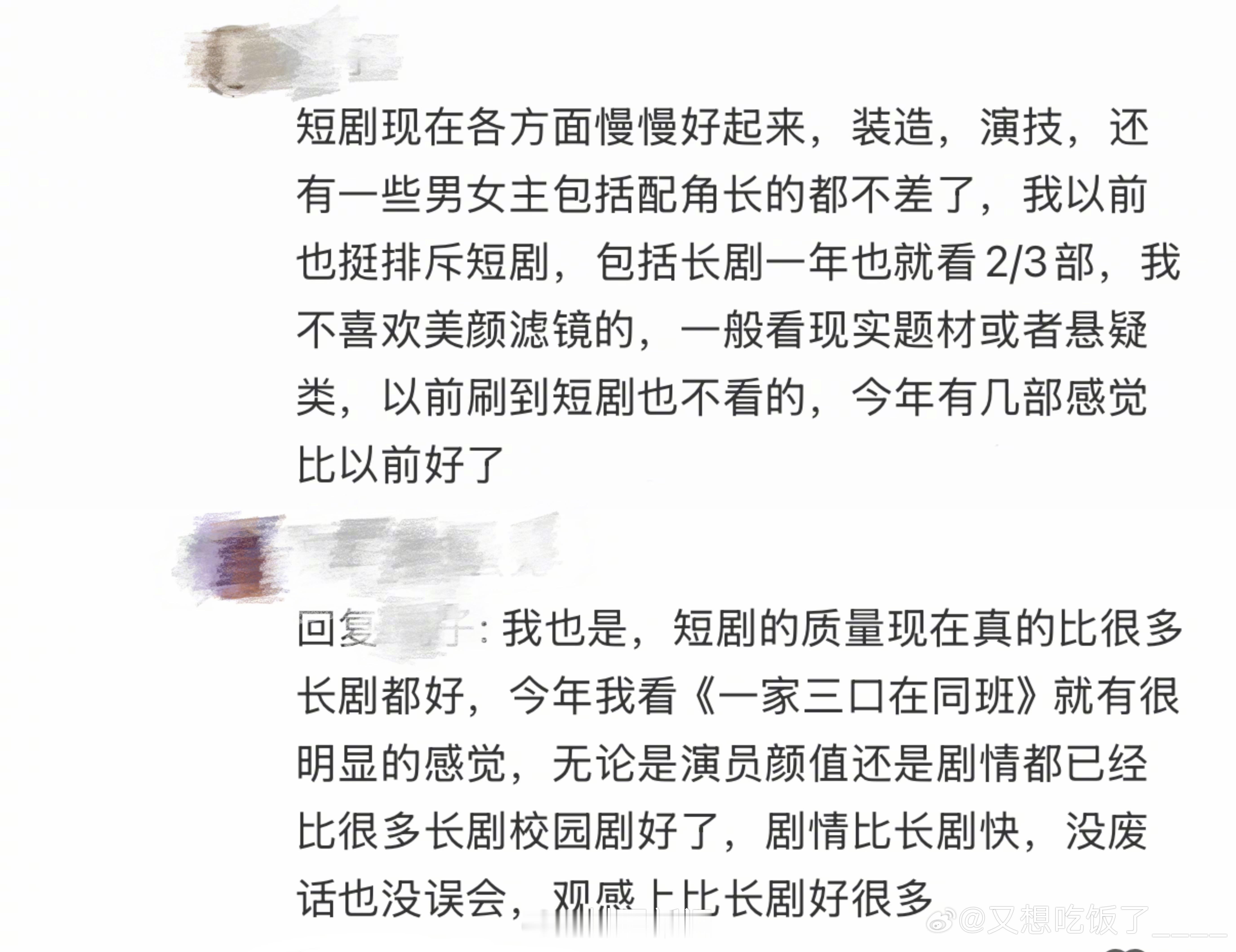 论优质短剧对影视行业的影响 今年明显感觉到短剧在升级,从无脑爽剧到精品走心,《一家三口在同班》就是代表,影视行业竞争越来越激烈,内容才是硬道理