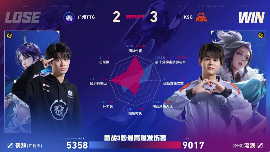 KSG/TTG第五局数据图:流浪甄姬团战爆发伤害9017