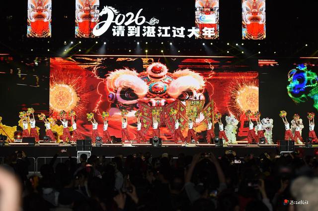 非遗展演成为新春文旅亮点,200余场非遗活动实现市县村联动。2月20日晚,时值正月初四,2026湛江非遗群英会在市体育中心隆重启幕,人龙舞、醒狮、英歌舞等非遗节目轮番上演,人形机器人与十五运会吉祥物趣味互动,传统非遗与现代元素精彩碰撞,为市民游客献上一场高品质文化盛宴。活动期间,还有2026架无人机腾空而起,点亮港城夜空。此次活动共吸引1.5万名观众到场观看,视频直播累计观看人数突破136万人次,线上线下人气高涨,网友点赞民俗魅力,市民感受非遗乡愁,有力擦亮城市文化名片,推动湛江新春文旅强势出圈。