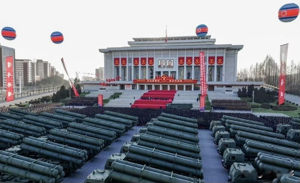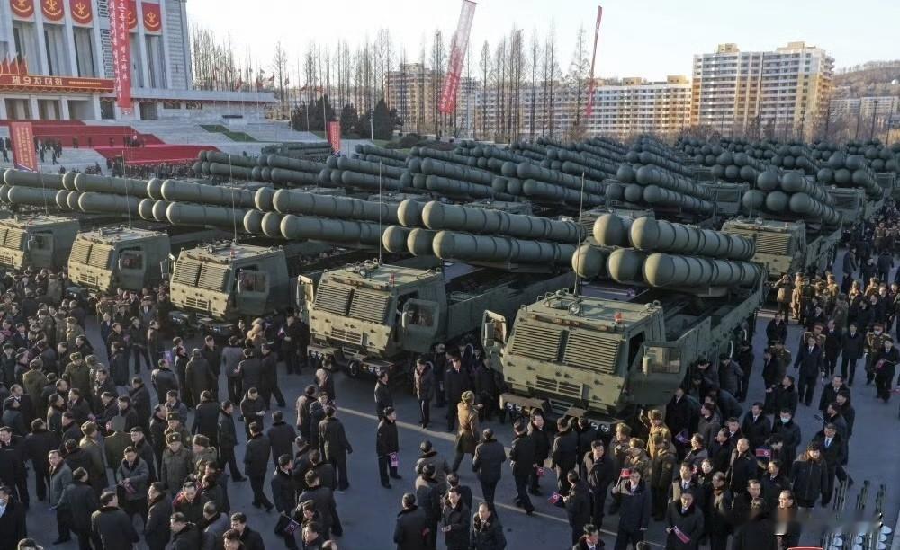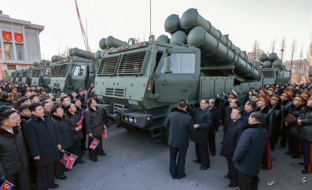 司令官春节给部队交付地表最强年货,50辆5联装600mm远程火箭炮,一列列的火箭炮,气势很足,不知道南面的看到是不是心里会发怵. 据网上资料显示,该火箭炮射程约300-400公里,射击精度接近战术弹道导弹。若是按照这个里程,可以覆盖全部朝鲜半岛。另外朝鲜官方表示,该组火箭炮在2个月短时间内生产交付,通俗说,量大管饱,这也说明朝鲜军工业在模块化组装等方面已经很成熟。 朝鲜具备这样的火箭炮,那三八线对面美军和韩军思密达估计会头疼一阵。