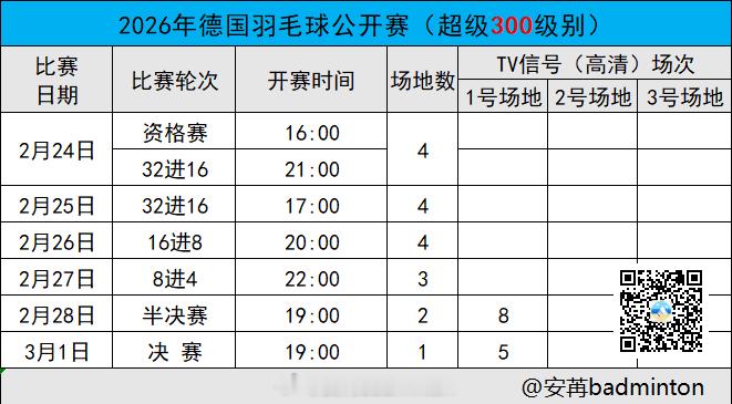 2026年德国羽毛球公开赛第二日赛程(图1)今日实时赛况(图2)开赛时间(图3)