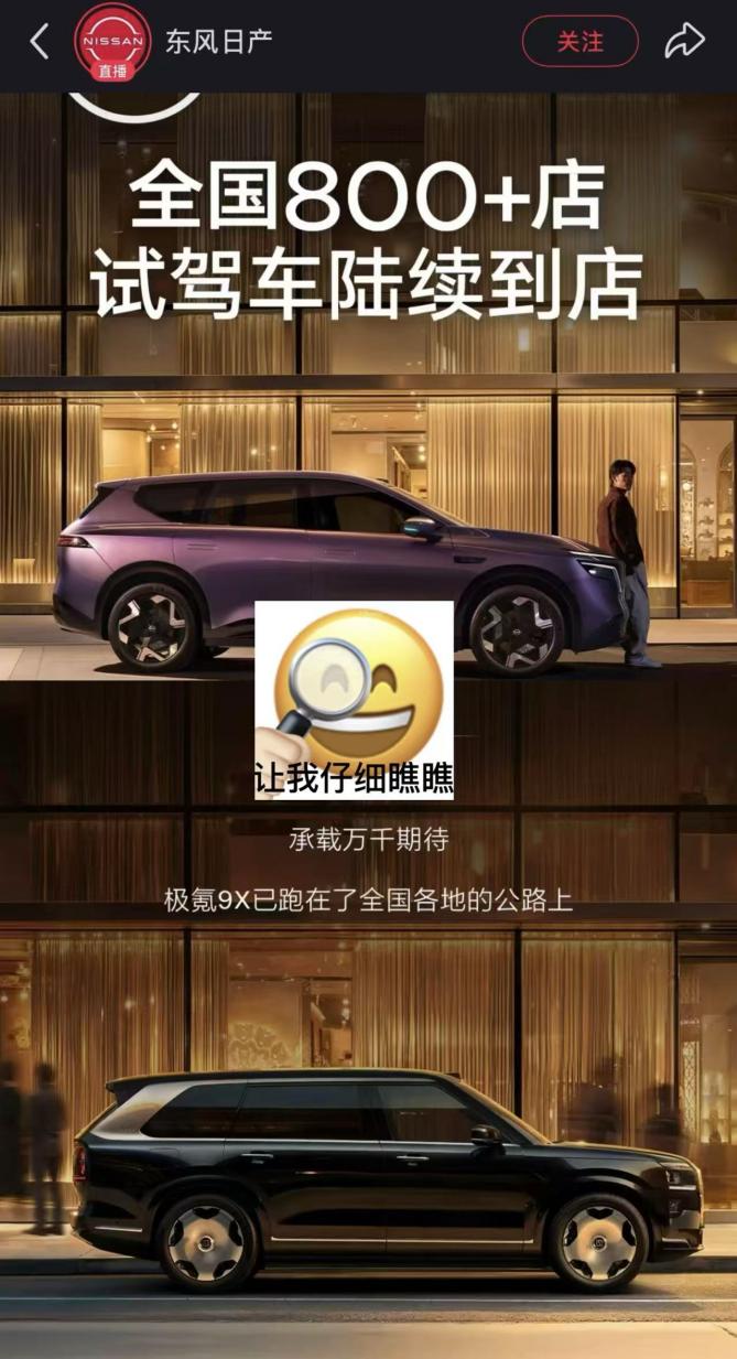 把东风日产NX8的宣传图和极氪9X的宣传图放一起,这下可以直接开始玩儿“找不同”游戏了。
