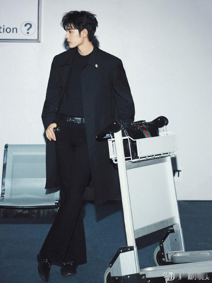 巨星肖战出发图来了,Gucci定制,整体好性感好时尚,鼻子上的小痣,慵懒的姿势和腰带,哪哪都透着魅惑,尤其喜欢肖战这件黑色风衣外套
