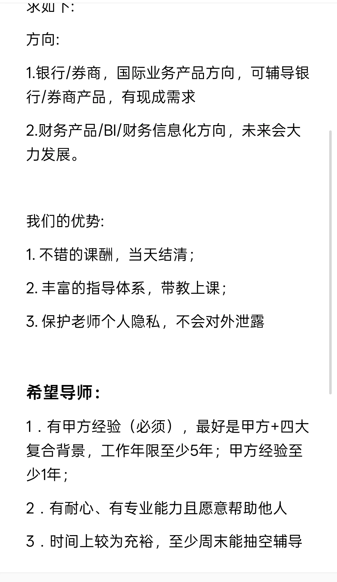 1.银行/券商,国际业务产品方向,可辅导银行/券商产品,有现成需求