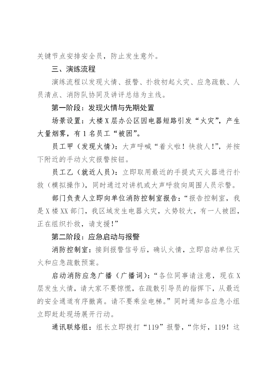 119消防宣传月办公楼突发火情应急演练脚本