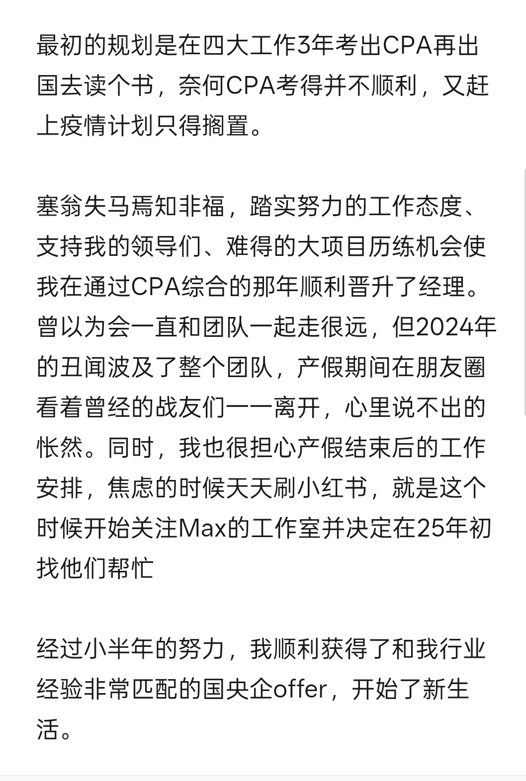 曾以为会一直和团队一起走很远,但2024年的丑闻波及了整个团队,产假期间在朋友圈看着曾经的战友们一一离开,心里说不出的怅然。同时,我也很担心产假结束后的工作安排,焦虑的时候天天刷,就是这个时候开始关注Max的工作室并联系上了。