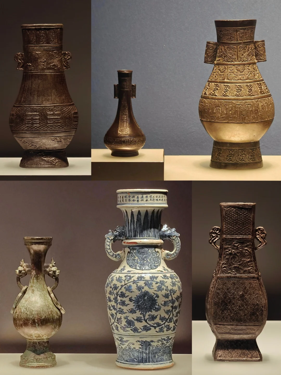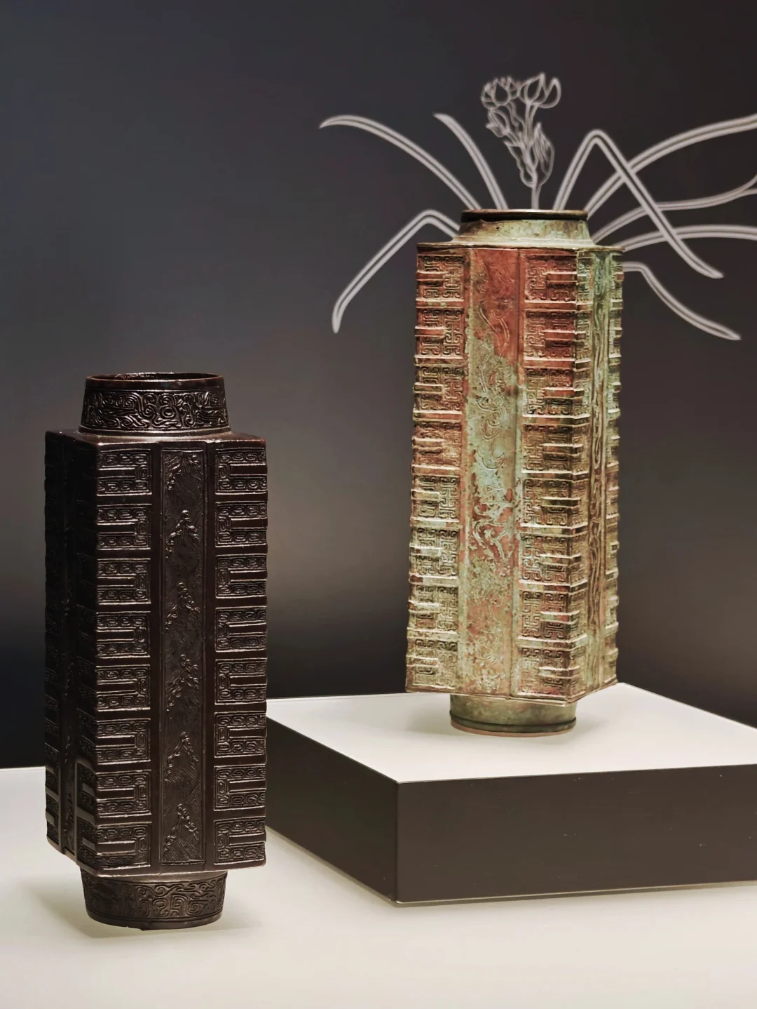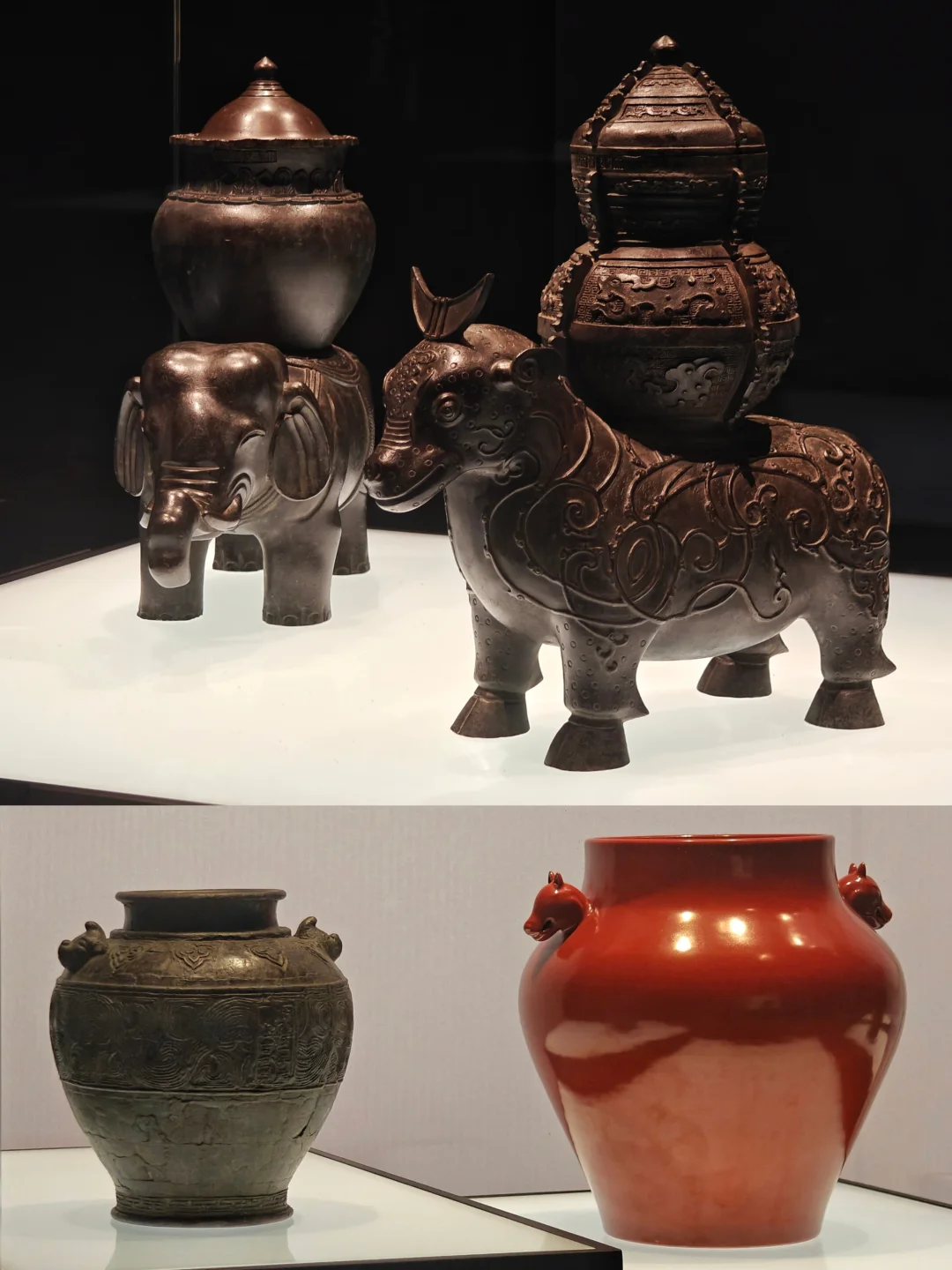 🟤并置与对话:宋徽宗与清高宗两帝对望;春秋时期者减钟与鎏金仿古铜“姑洗”钟;琮式瓶的功能演变;相同功能不同材质器物的对照;乾隆双凤壶与法国仿品的中西对照