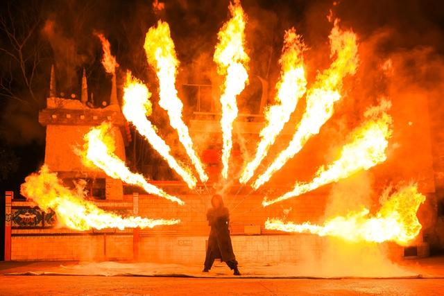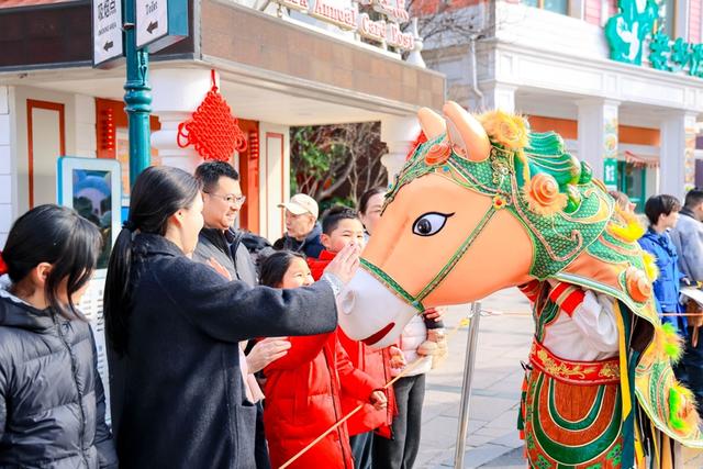 同时,园区特别推出马年定制非遗大戏《神驹献瑞》,融合高跷傩舞、高跷龙璃、马头舞等表演,展现传统艺术魅力。此外,火舞、梅花桩舞狮、顶缸等杂技演出以及《欢乐迎宾》《超级马力》花车巡游等近百场主题演艺全天轮番上演,营造浓厚春节氛围。