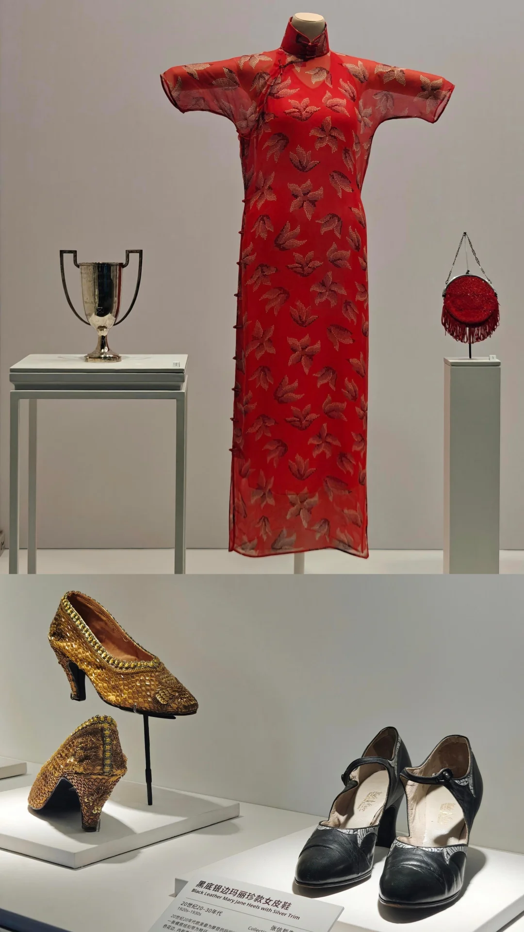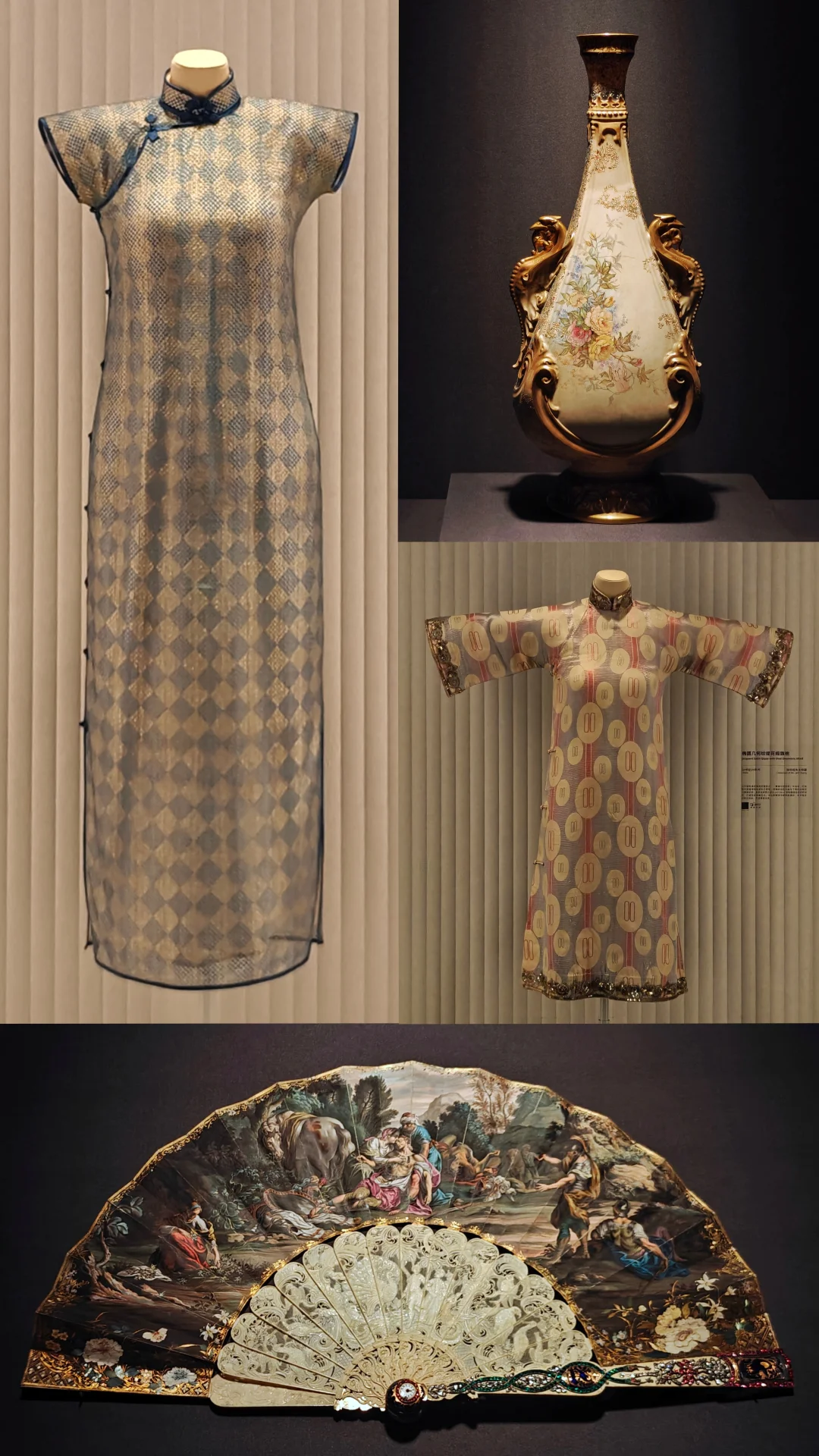 Doir、Chanel、Gucci、老凤祥等品牌的典藏珍品和旗袍并列展出,形成中西设计互鉴的直观对照。