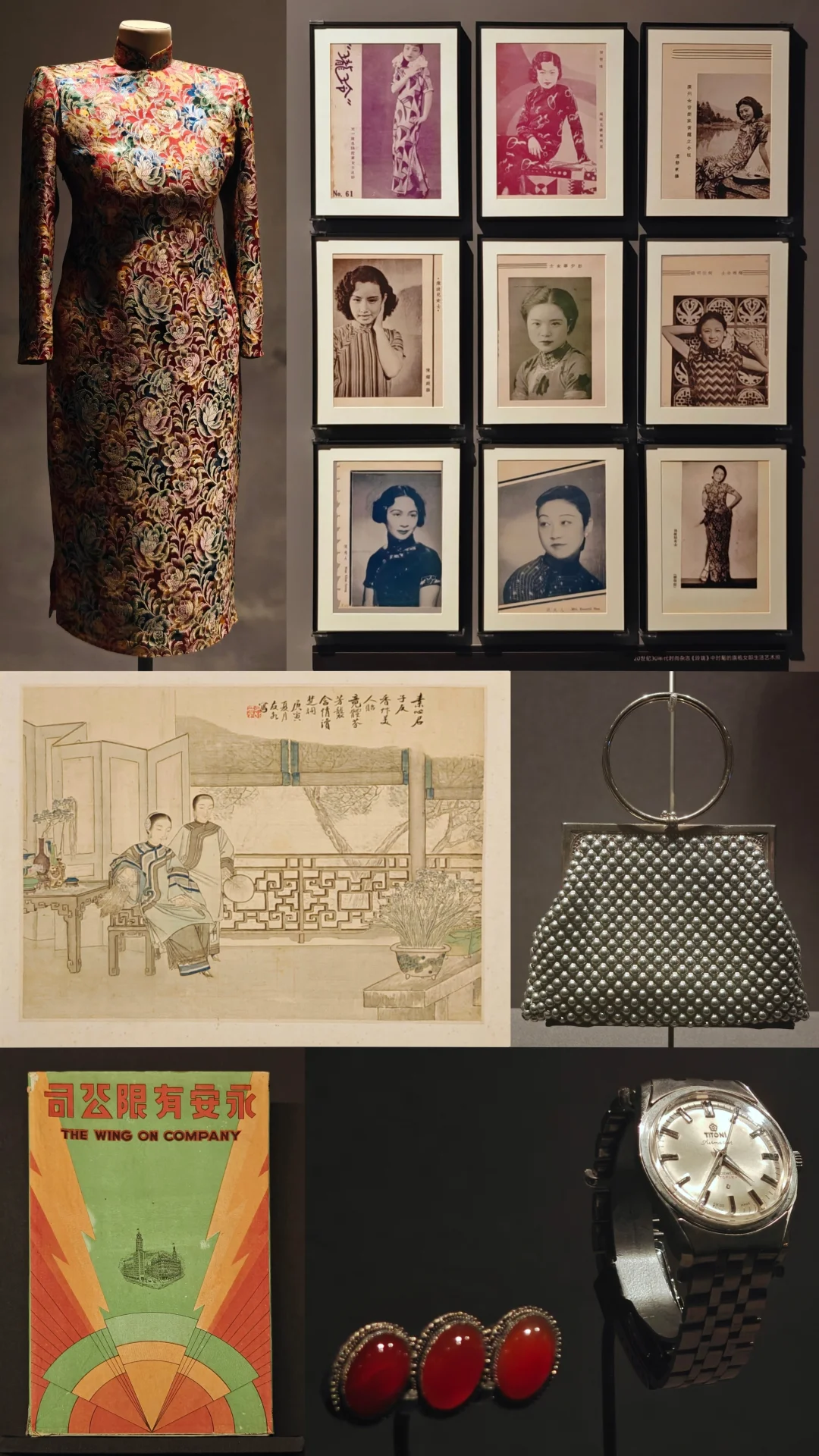 月份牌、折扇、珠宝首饰、腕表、手袋、家具等旧物件,还原近代上海的生活场景。
