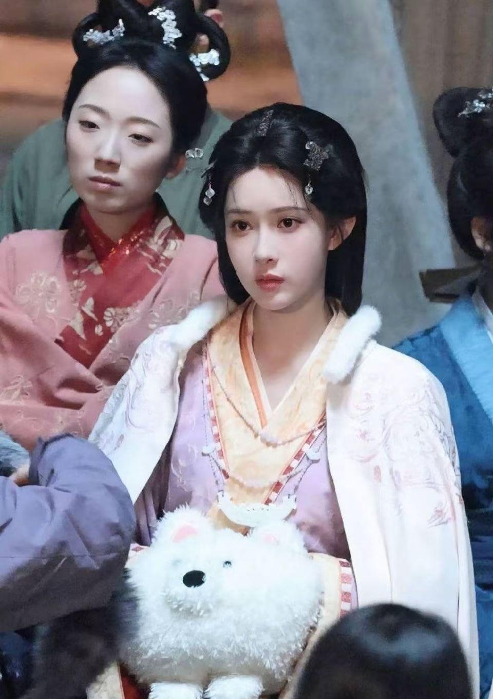 温柔眼波流转,黑发如瀑,唇红如樱,尽显东方古典美。