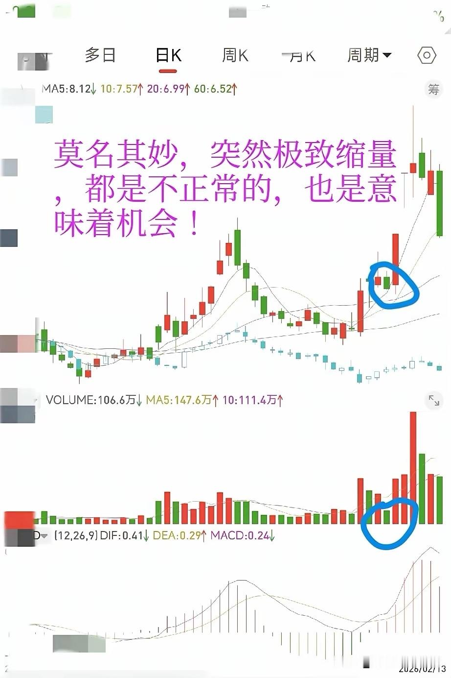 买卖是同时存在的,买量和卖量匹配,才会有成交量!有多少卖量,就有多少买量!有多少买量,就有多少卖量。一买一卖,如果从中做找到套利的机会,才是关键所在,这必须对买卖行为有一个充分的理解!交易量放出来的目的是什么?为什么要放出交易量?交易量不放出来的目的是什么?为什么会出现缩量?放量是因为吸引买盘进场,缩量是因为买盘不足。放量的目的就是为了卖出,但是对于一只股票而言,一个涨停板,并不能代表什么,也不能说明什么,因为从情绪的角度来看,以及从吸引买盘的角度来看,首板本身放量就是一个简单的高抛低吸行为,而不是行情行为,一个涨停板带来的买盘是严重不足的,套利空间是很小的,甚至严重不足。所以,对于涨停板而言,至少2个涨停板,才会脱离一个简单的高抛低吸的或者短点套利的尴尬,至少这两个板有一个是换手板,有资金参与进来才是好事。当放量以后再次极度缩量,就是最好的机会,因为交易量不会出现突然放和缩的情况,只会逐步增减!