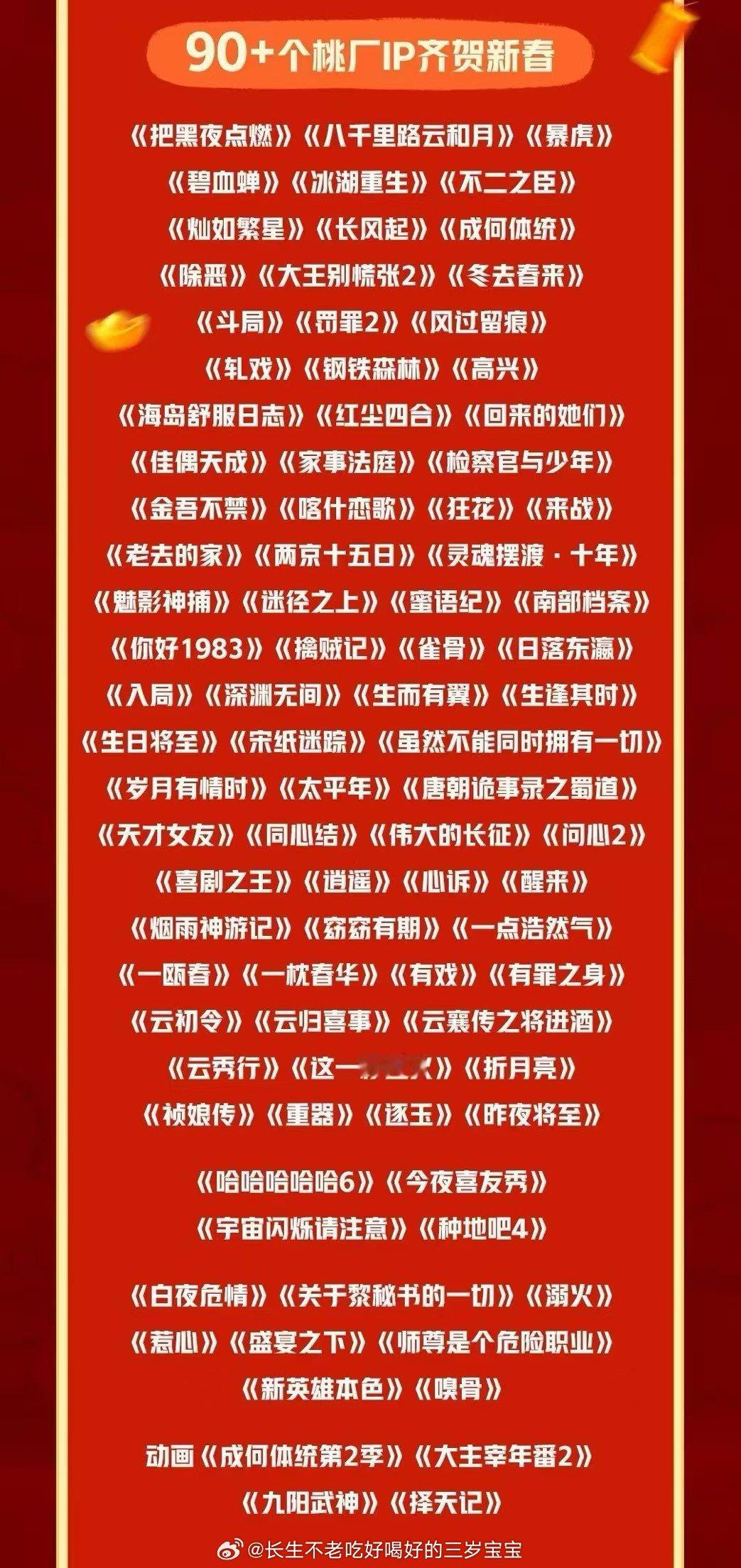 🥝大年片单也太全了吧!翻了一遍发现不仅有剧集综艺,居然还有动画《成何体统第2季》和《大主宰年番2》!《择天记》也在!!本二次元真的狂喜乱舞!去官微参与互动还能抽周边,这热闹必须凑,可比宅家无聊有意思多了!