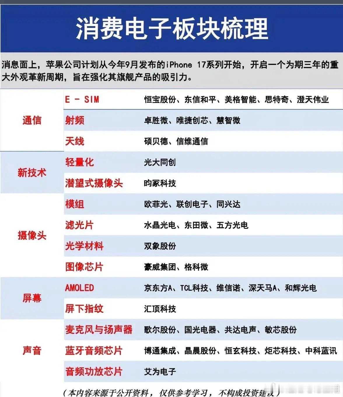 2026年消费电子彻底爆发!AI+创新双轮驱动,这波机会别再错过!2026年的消费电子板块,早已不是当年那个靠手机走量的传统赛道,在AI技术全面赋能与产品形态革新的双重推动下,行业迎来新一轮价值重估,成为科技板块最具看点的投资主线之一。告别了存量市场的内卷,消费电子正迎来清晰的行业拐点。一边是AI PC、AI手机、智能眼镜、VR/AR设备加速渗透,端侧AI、柔性显示等新技术落地生根;另一边是折叠屏手机持续放量,UTG玻璃、铰链、柔性屏等核心部件需求暴涨。看似传统的消费电子,早已悄悄完成蜕变。行业龙头纷纷跨界布局,从手机组装延伸至AI服务器、汽车电子、云计算等高景气赛道,曾经的“故事”变成实打实的业绩,产业链价值迎来全面重构。想要把握消费电子的机遇,牢牢抓住三大核心主线就够了!第一是AI端侧硬件,AI手机、AIoT设备全面普及,带动封装、连接器、射频等核心零部件需求爆发;第二是折叠屏创新赛道,高端化趋势不可逆,柔性屏、结构件龙头直接享受行业增长红利;第三是算力跨界转型,头部制造企业切入AI服务器赛道,成长属性拉满,业绩确定性极高。板块内优质龙头各有亮点:立讯精密深耕果链+算力+汽车电子,工业富联受益AI服务器放量,蓝思科技占据折叠屏部件高地,维信诺深度绑定华为供应链,歌尔股份领跑VR/AR代工,环旭电子坐拥封装核心技术。对于普通投资者,短线可关注折叠屏、VR/AR等高弹性方向,中线布局算力跨界龙头,稳健型朋友直接布局消费电子ETF,一键把握行业整体机会。2026年是消费电子的复苏大年、创新大年、AI大年,紧跟技术趋势,锁定核心龙头,才能稳稳抓住这波行业红利!