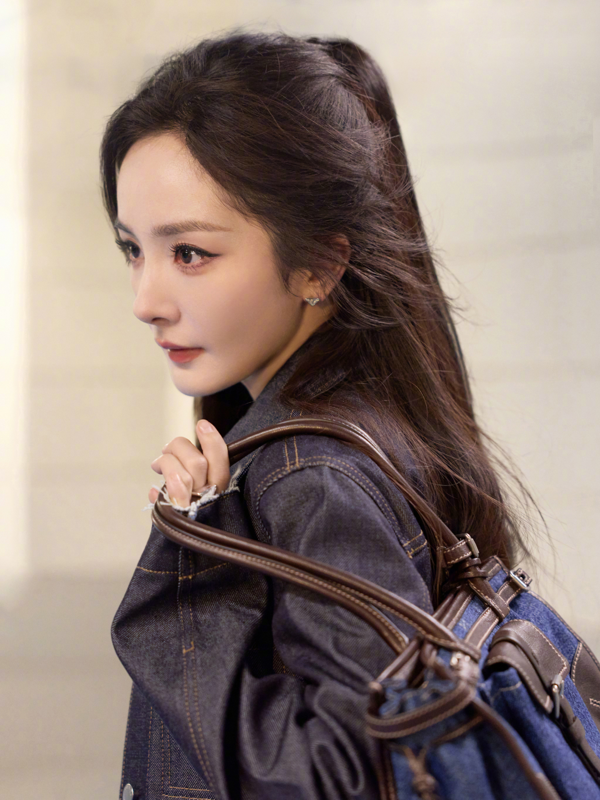 杨幂 in Prada ✈️🇮🇹 即将亮相品牌2026秋冬女装秀,简洁的丹宁牛仔装,搭配牛仔Bonnie手袋,官宣代言人之后的时装周首秀,自然是备受关注,2.26秀场见~