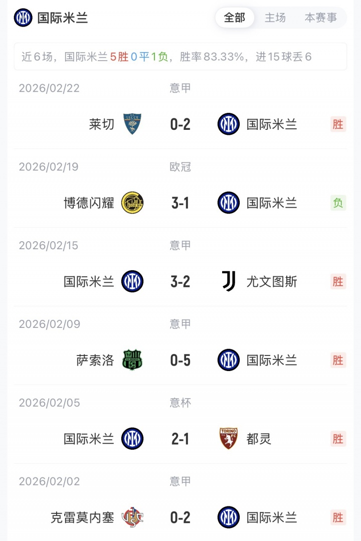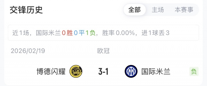 国米首回合客场1-3不敌博德闪耀,本场晋级者将在16强抽签中对阵曼城或葡萄牙体育。